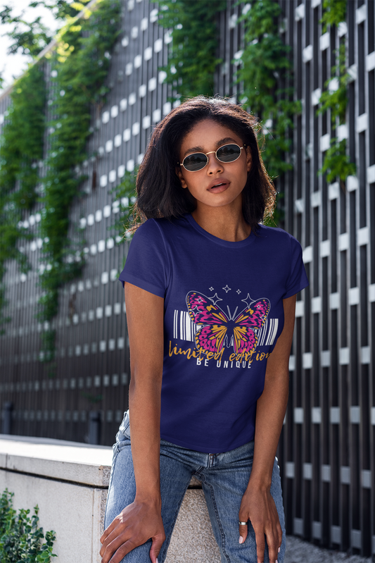 Fashionable Royal Blue Crew Tee – ‘Limited Edition’ with Trendy Butterfly Print