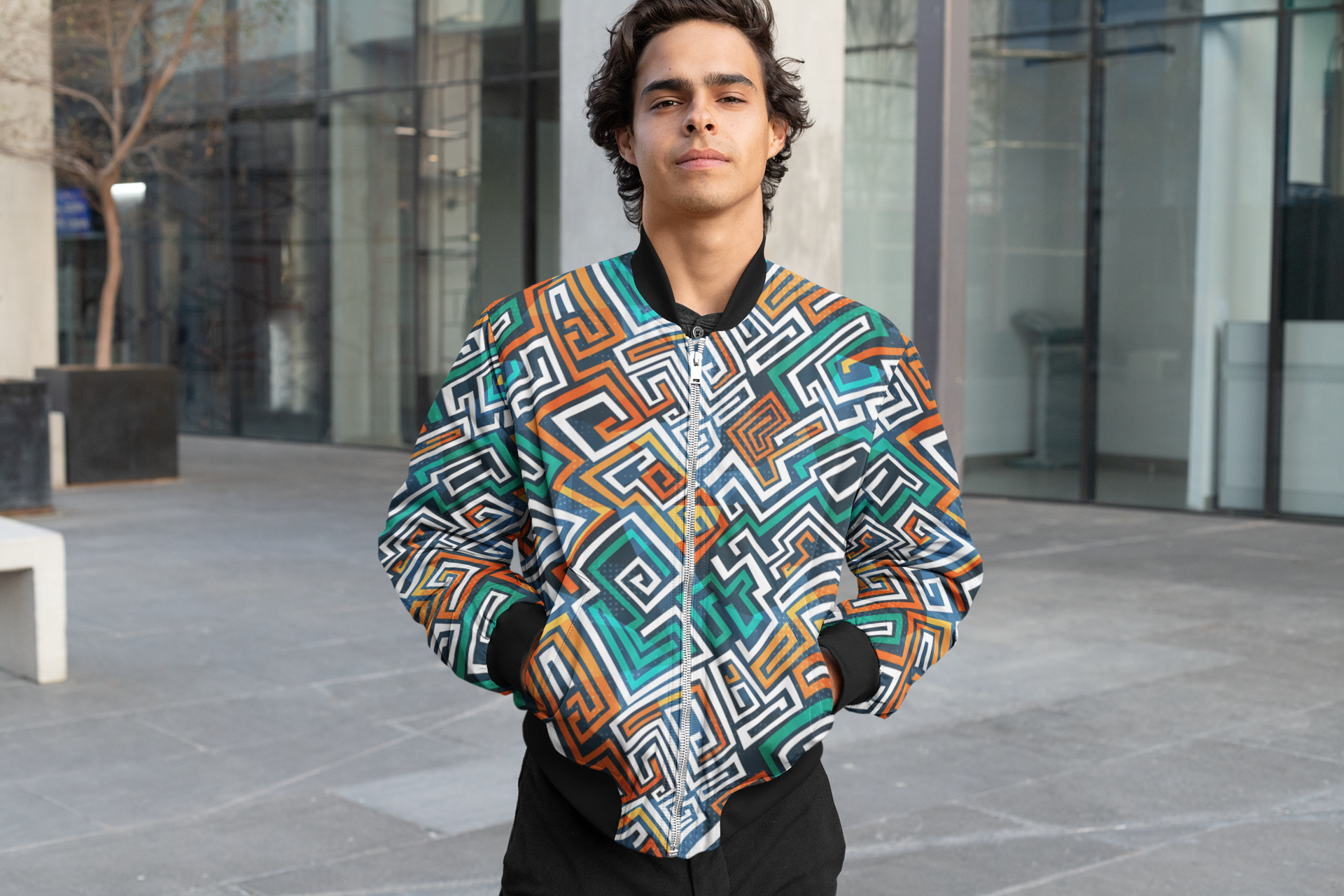 Get ready to take your style to the next level with our Abstract Maze Multicolor Men's Bomber Jacket! Featuring a unique abstract maze design, this jacket is perfect for those looking for a bold and playful look. Made with high-quality materials, it offers both comfort and style. Stand out from the crowd with this must-have jacket!