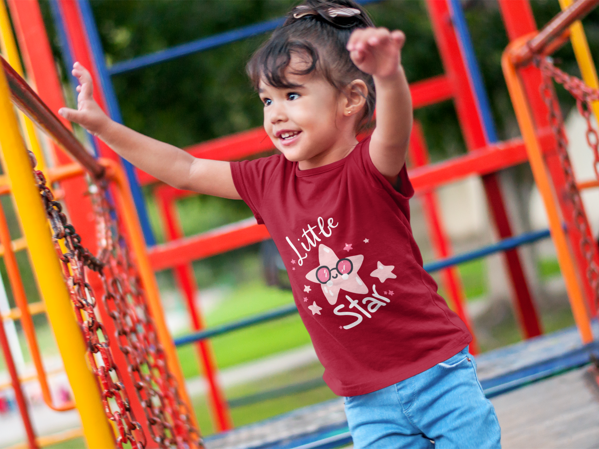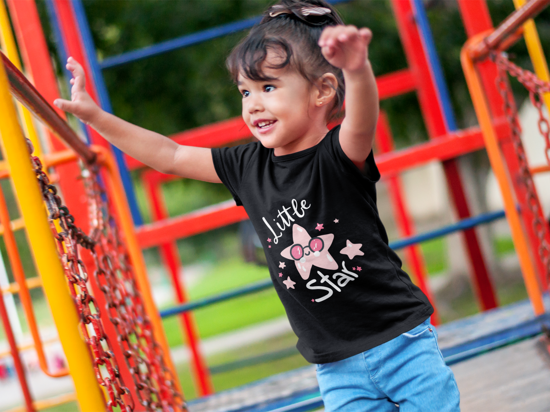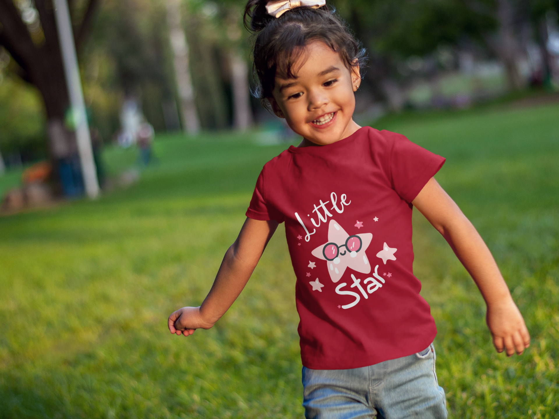 Let your little one shine bright in this adorable "Little Star" t-shirt! Featuring a charming pink star character with cool sunglasses, this tee is sure to become a favorite. Crafted from ultra-soft, breathable 100% cotton, it's perfect for all-day play, keeping her comfortable and stylish whether she's at the park, preschool, or just being her fabulous self. A delightful addition to any little girl's wardrobe!