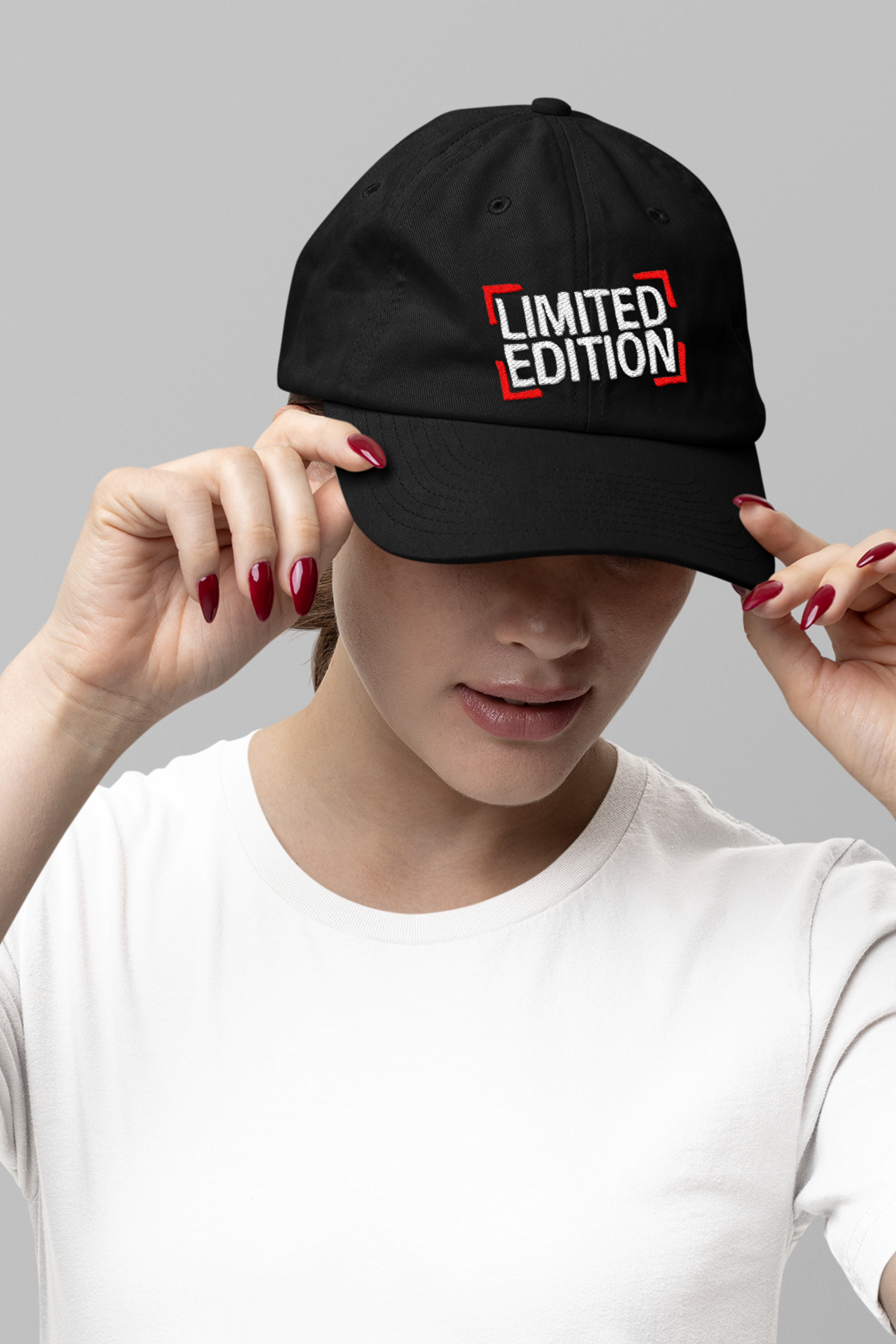 Our black "Limited Edition" baseball cap is more than just a hat; it's a collector's item. Crafted from premium materials for exceptional quality and comfort, this cap features a meticulously embroidered design, highlighting its exclusivity. With limited quantities available, this cap is a true representation of superior style and rarity. Don't miss your chance to own a piece of something special.