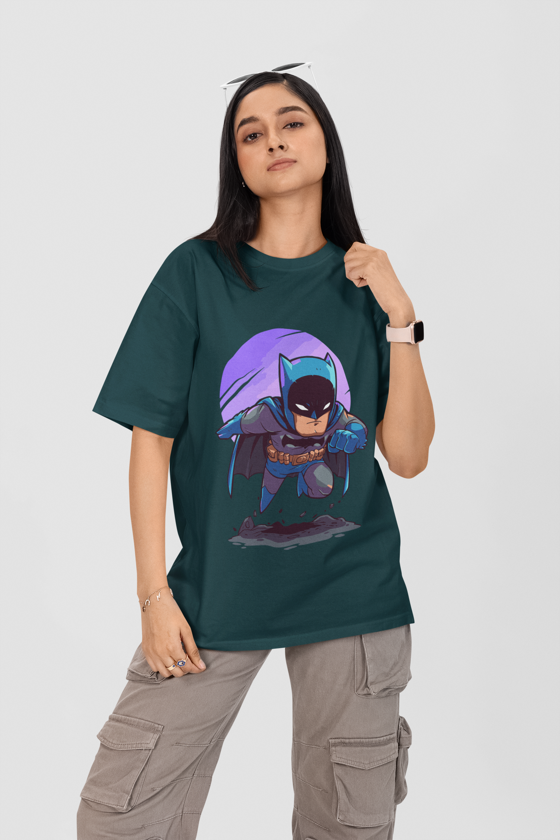 Unleash your inner hero with this oversized blue t-shirt featuring a playful chibi Batman in action! Made for both men and women, it's the perfect blend of comfort and style. Save the day (and your wardrobe) with this quirky and fun addition. Kapow!