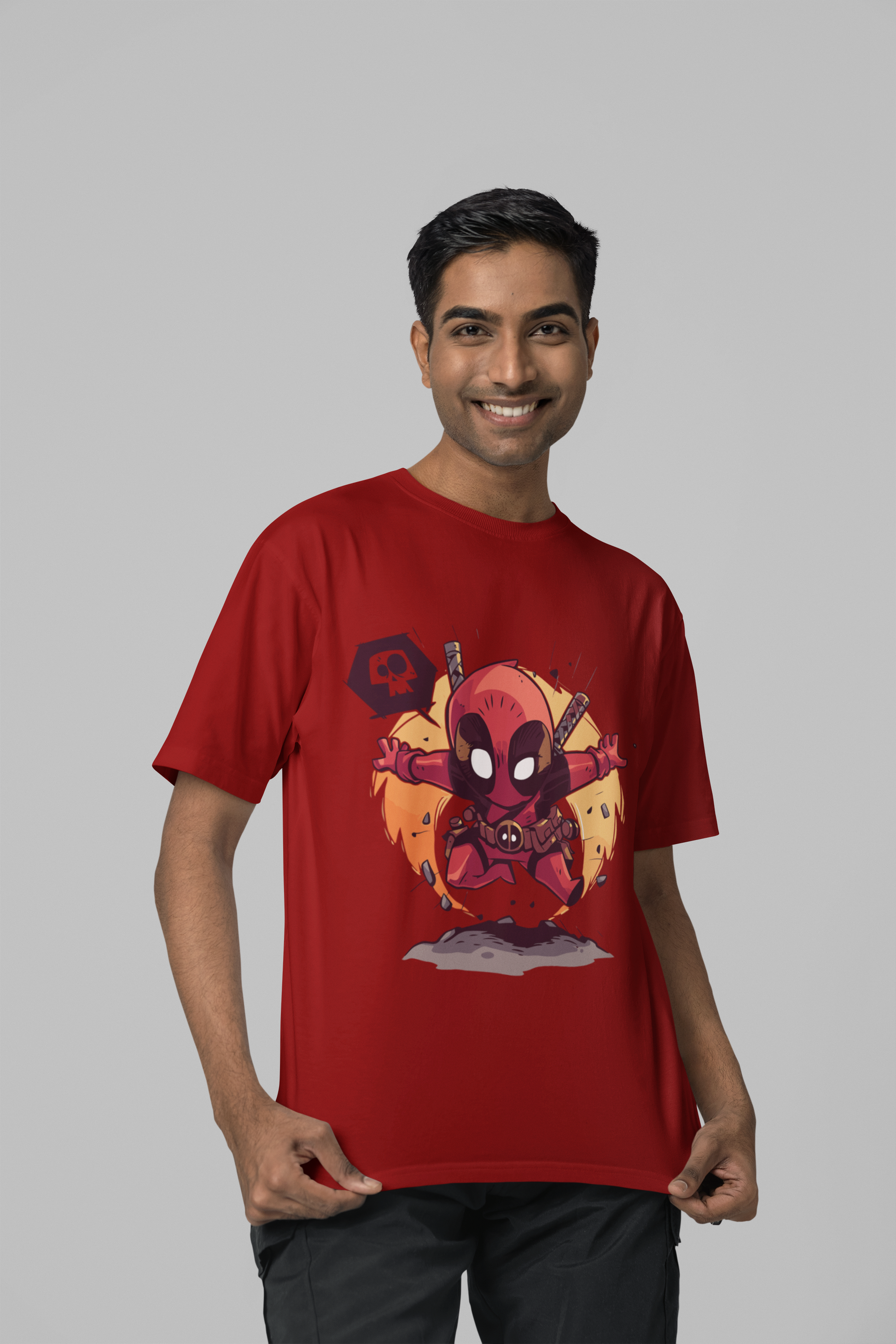 Unleash your inner Deadpool with this oversized red tee! Featuring a chibi version of the iconic antihero, this tee is perfect for anyone who loves to add a touch of mischief and humor to their wardrobe. With a loose, comfortable fit, it's the ideal choice for a casual, playful look.