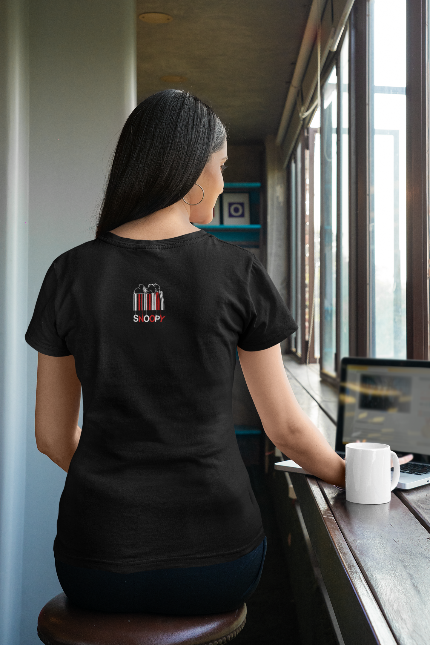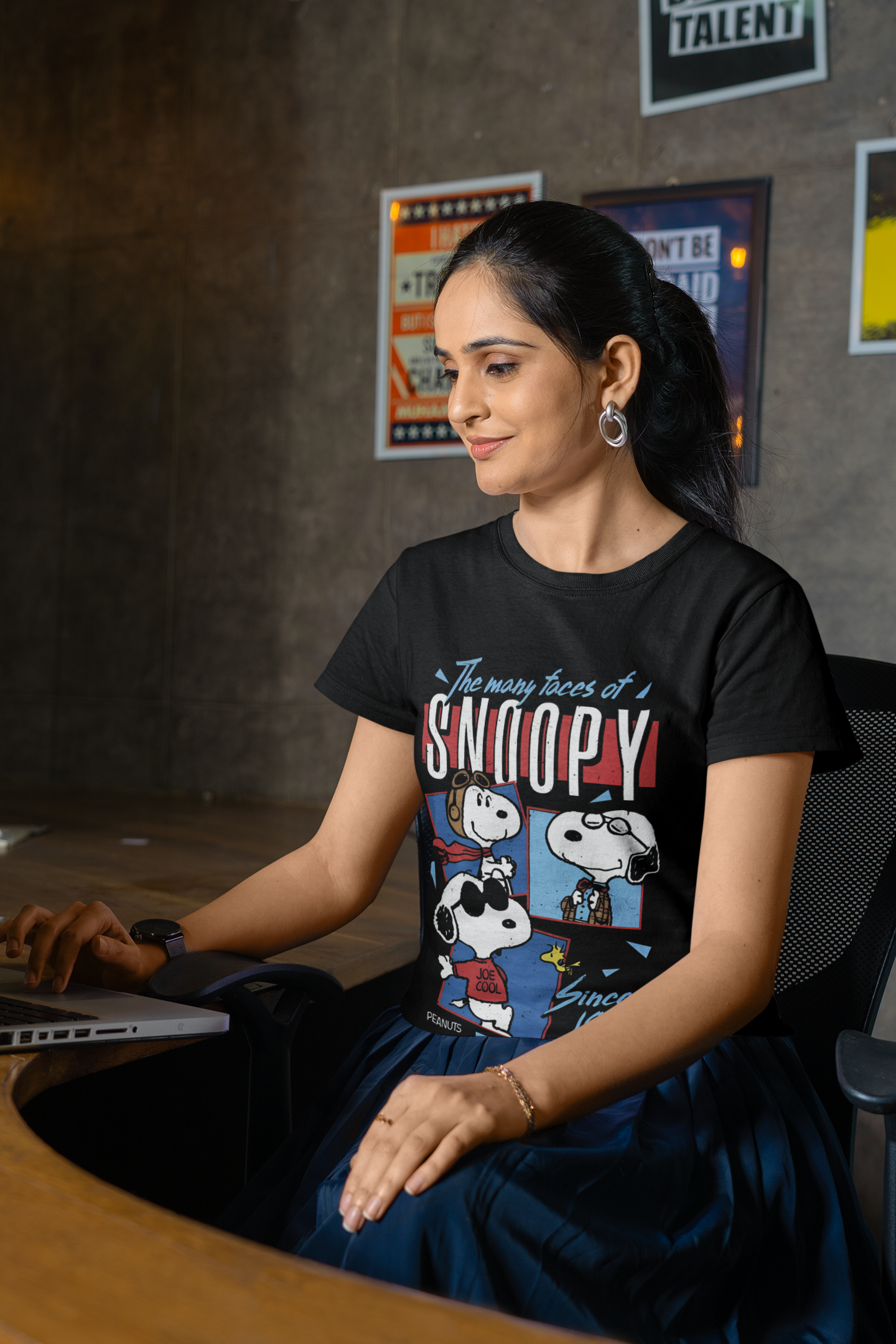 Chic & Nostalgic Black Tee – ‘Snoopy Expressions’ Fun Cartoon Design