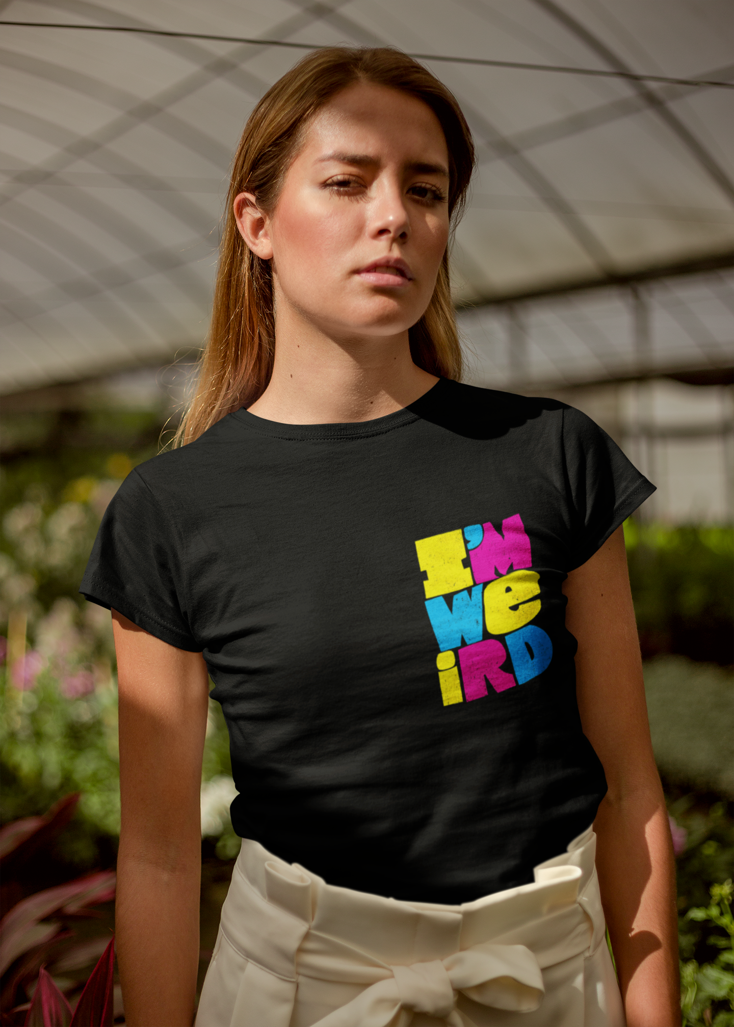 Unleash your bold and quirky side with our Edgy & Chic Black Tee. Make a statement with our 'I Am Weird' tee, designed for confident and playful women. Perfect for adding a unique touch to any outfit. You may be weird, but that's what makes you awesome!