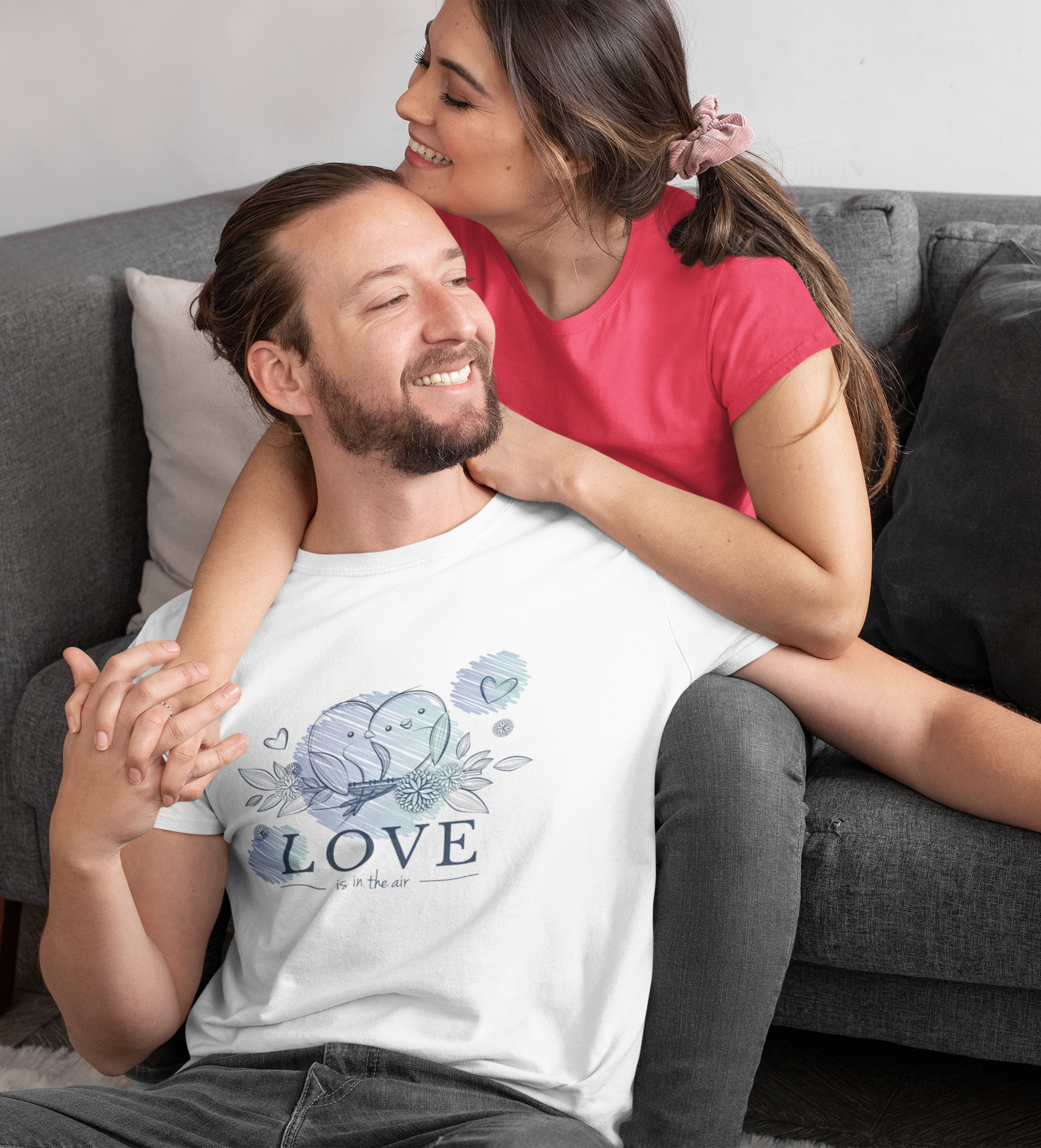 Add some romance to your wardrobe with our For Lovebirds Everywhere T-shirt. Featuring a playful "Love Is in the Air" design on a crisp white tee, this unisex shirt is perfect for spreading love and laughter. Made with soft, high-quality fabric, it's sure to become your new favorite.