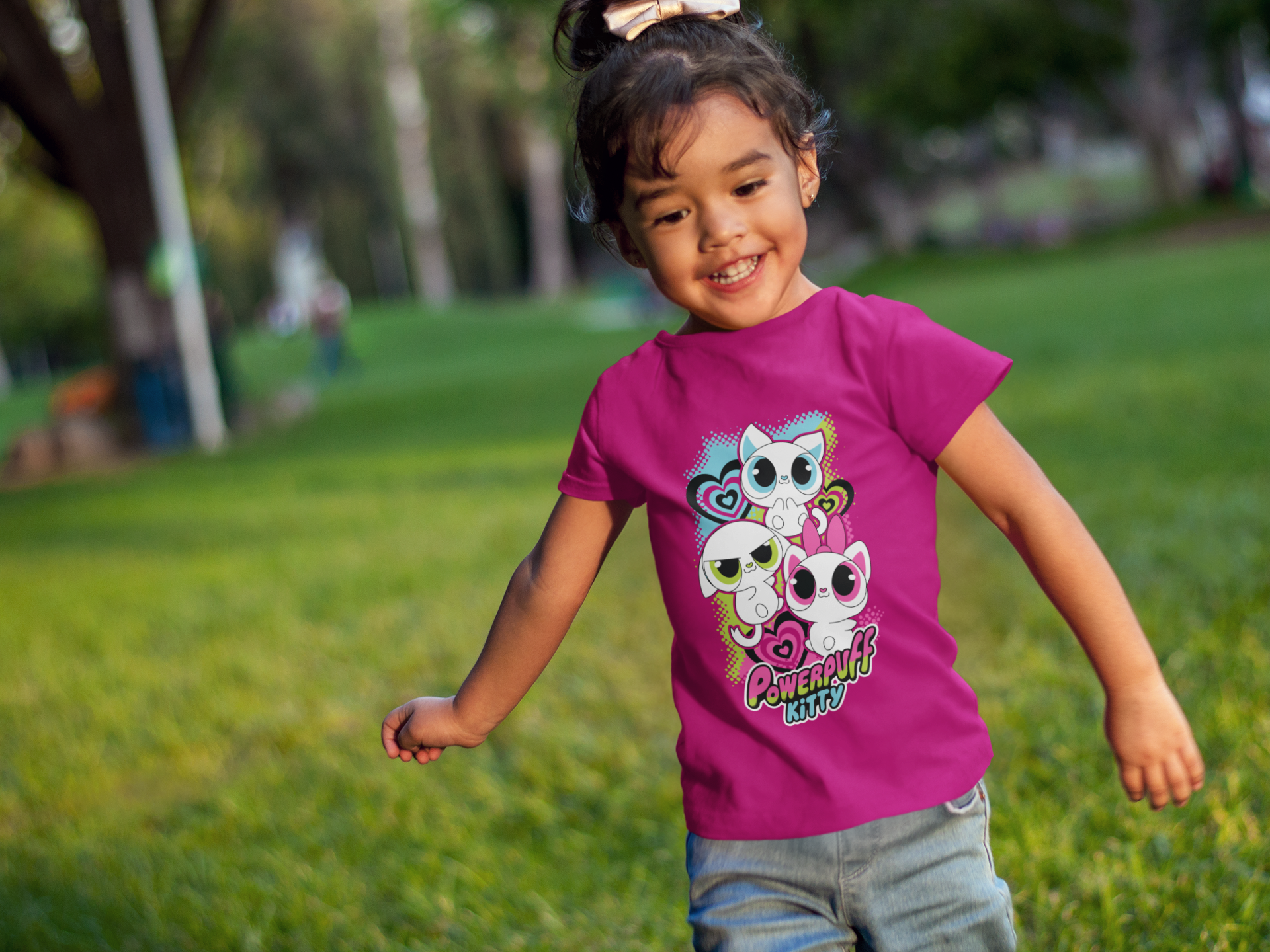 Girl's "Powerpuff Kitty" Graphic Tee - Soft Cotton Shirt
