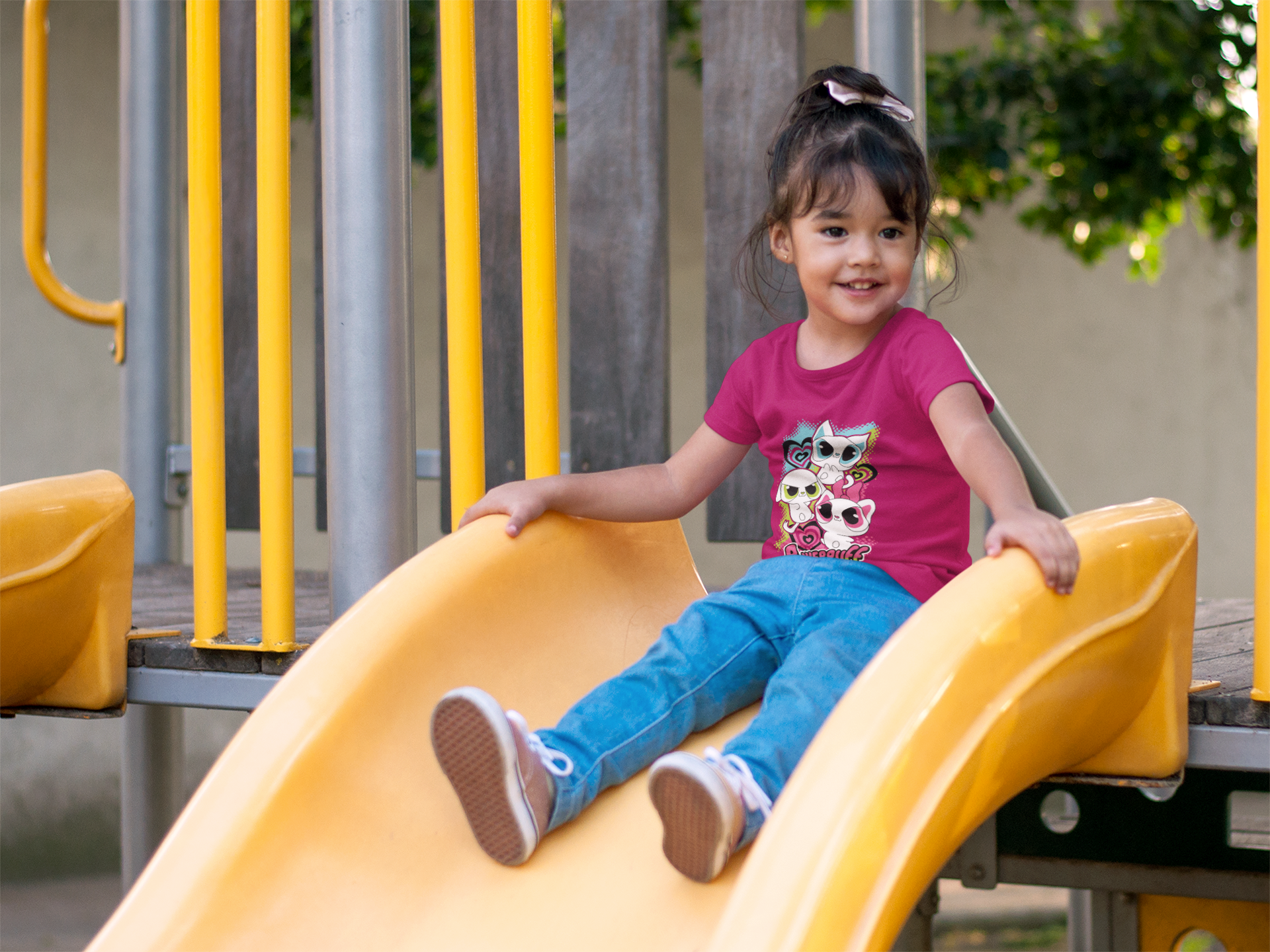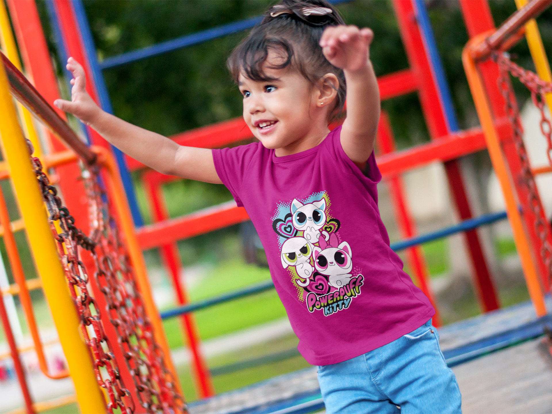Unleash the cuteness with this vibrant "Powerpuff Kitty" t-shirt! Featuring an adorable trio of super-powered kittens ready for adventure, this tee is sure to be a hit. Made from ultra-soft, breathable 100% cotton, it's perfect for all-day play, keeping her comfortable while she saves the day (or just has a blast at the playground!). A purr-fectly fun addition to any little girl's wardrobe.