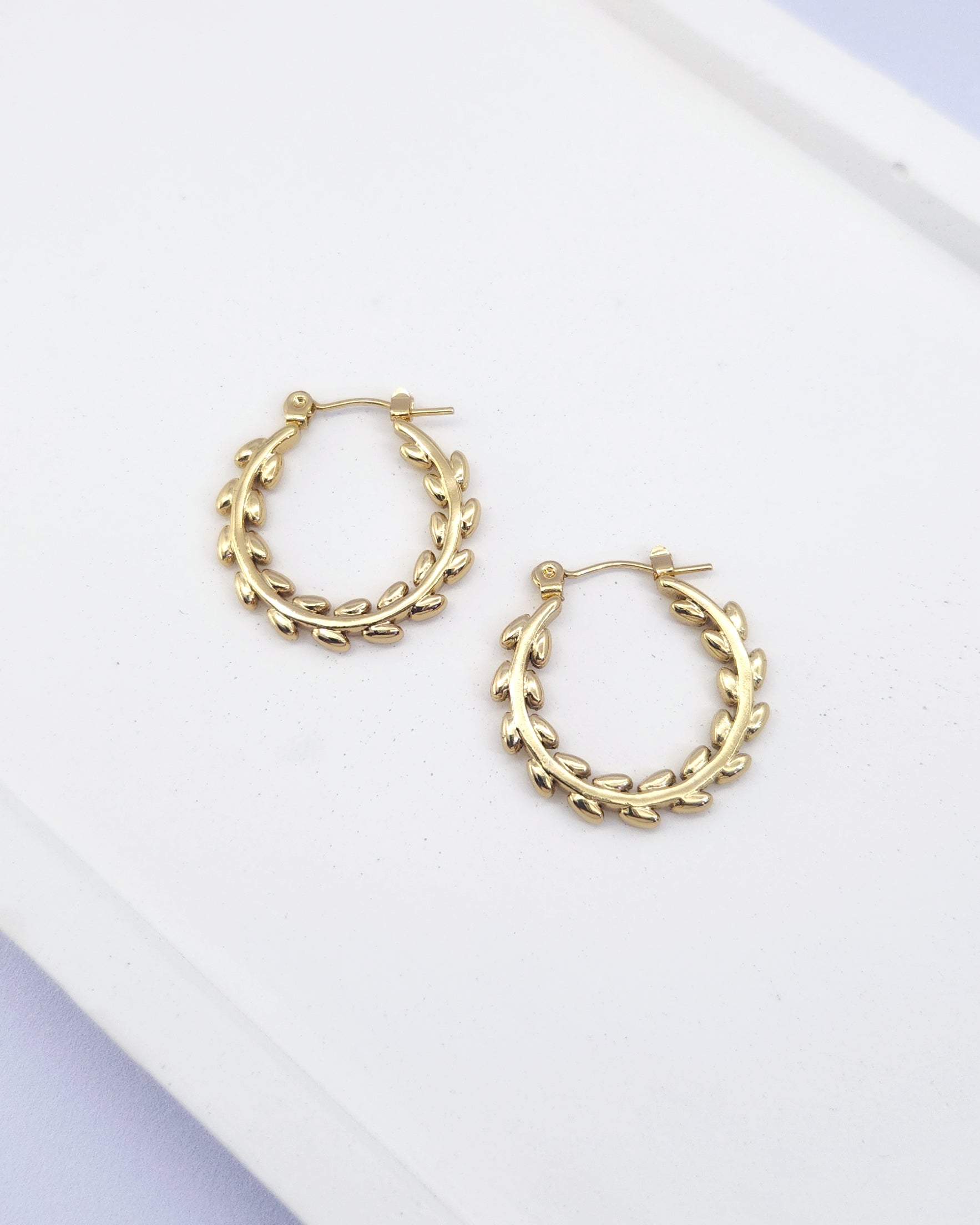 Golden Vine Hoops | Leaf Laurel Wreath Earrings