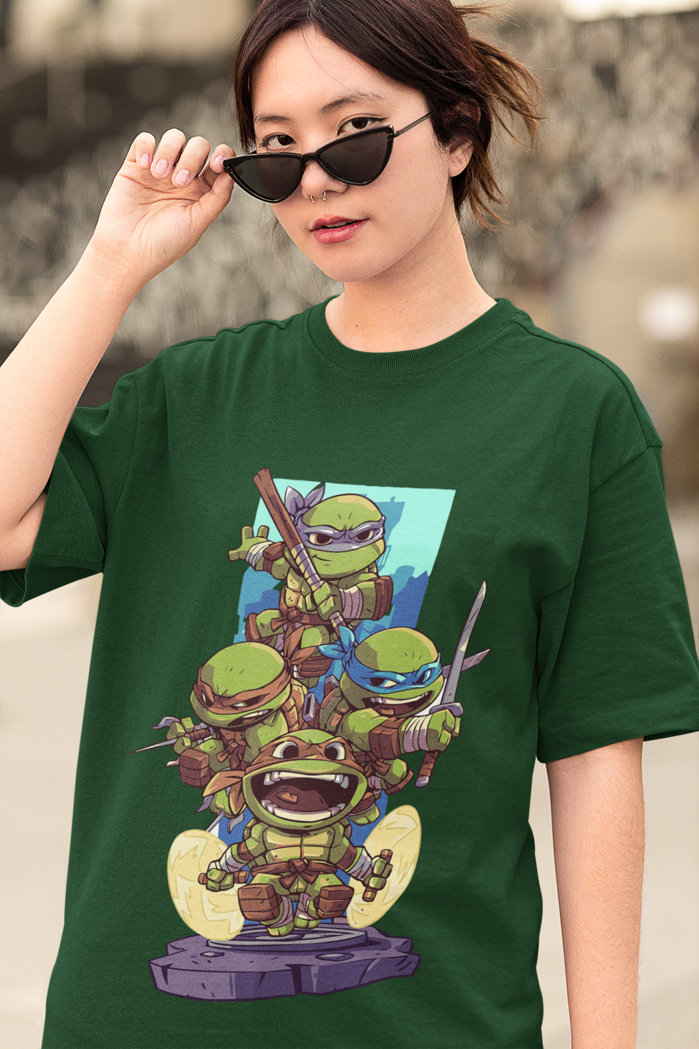Heroes in Green: Oversized Unisex TMNT Printed Tee