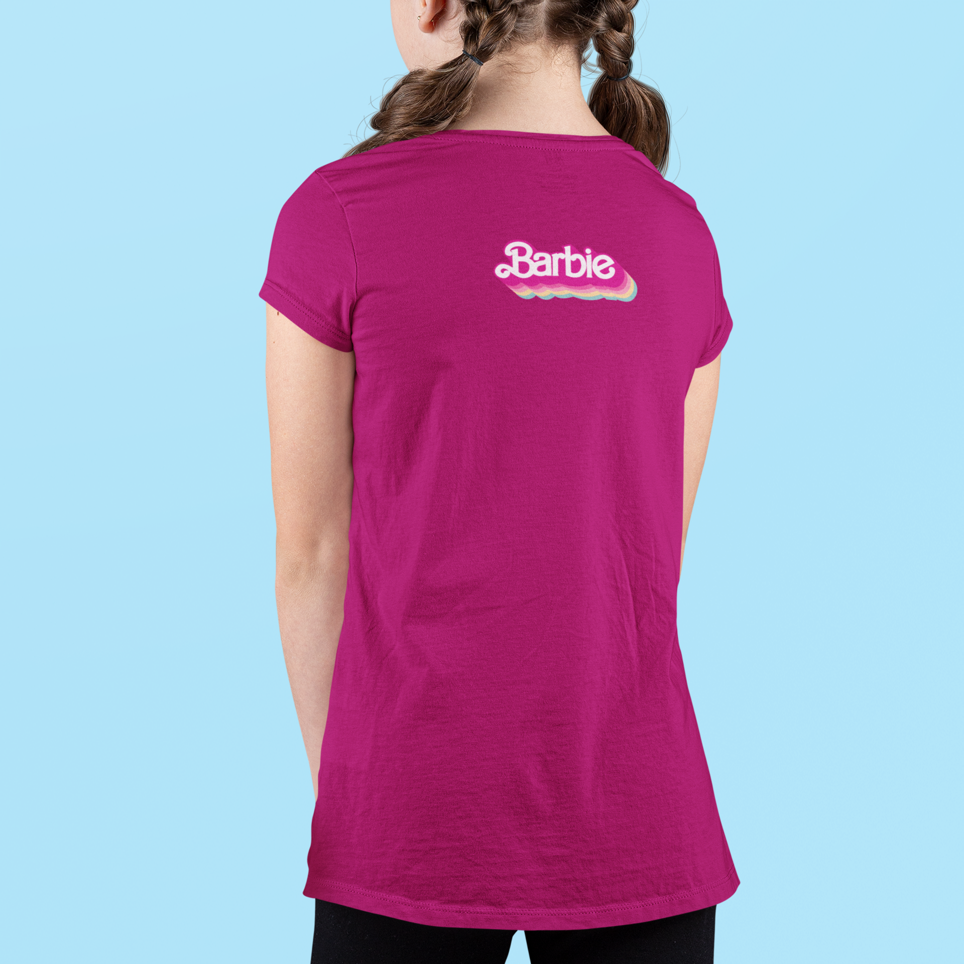 Get ready for endless fun and fabulous fashion with this super-soft 100% cotton Barbie t-shirt for kids! Designed for comfort and durability, this pink tee showcases a classic Barbie graphic that's sure to delight. Whether she's at school, the park, or having a playdate, this breathable cotton t-shirt will keep her cool and comfortable. It's the perfect blend of iconic style and everyday wearability – a dream outfit for any young girl!