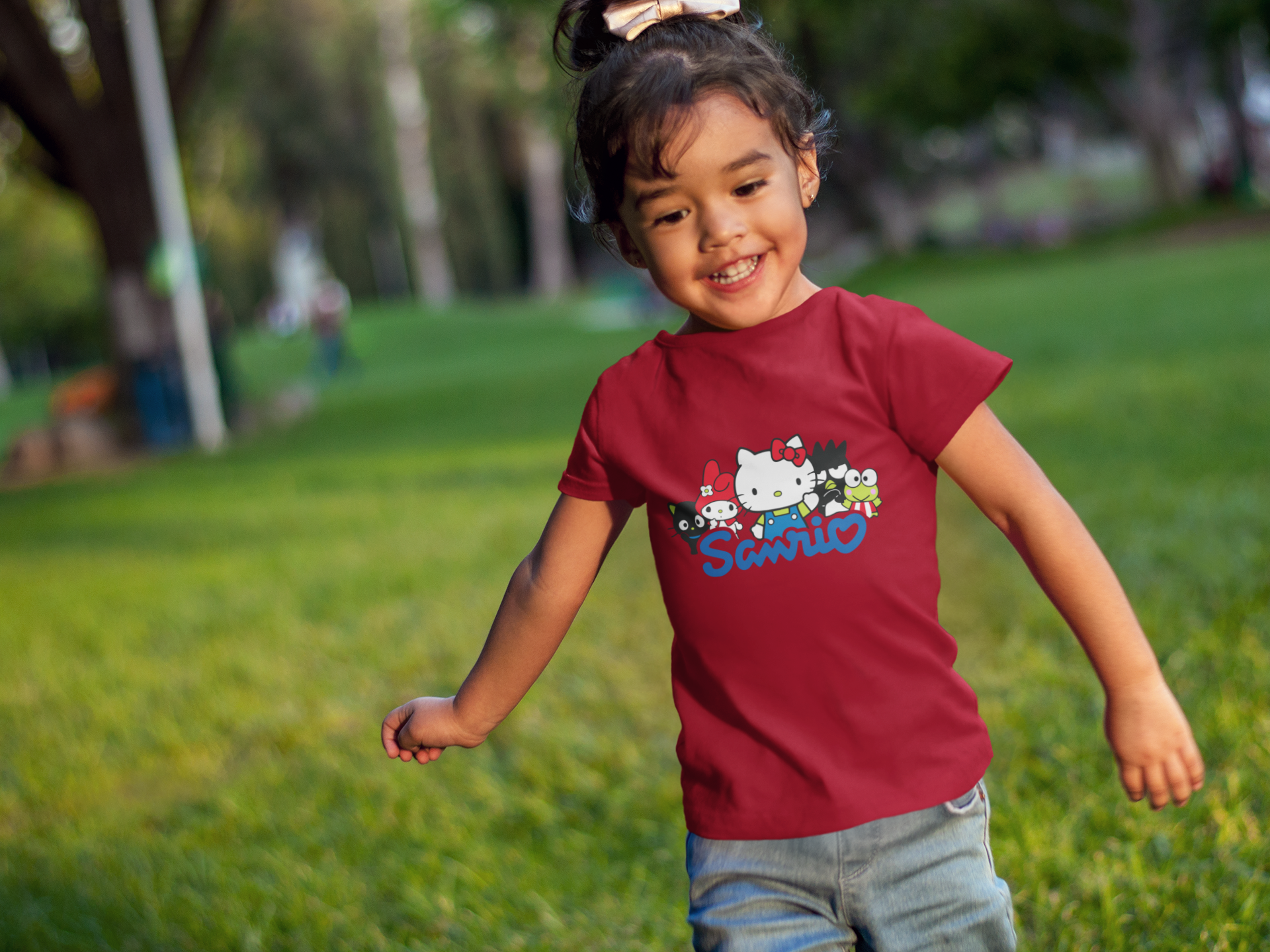 Bring a world of cuteness to her wardrobe with this charming Sanrio characters t-shirt! Showcasing iconic friends like Hello Kitty, My Melody, the mischievous Badtz-Maru, playful Keroppi, and sweet Chococat, this tee is pure joy. Crafted from premium 100% cotton, this t-shirt is wonderfully soft and gentle on skin, perfect for school, parties, or just spreading Sanrio joy. It’s a delightful celebration of friendship and fun!