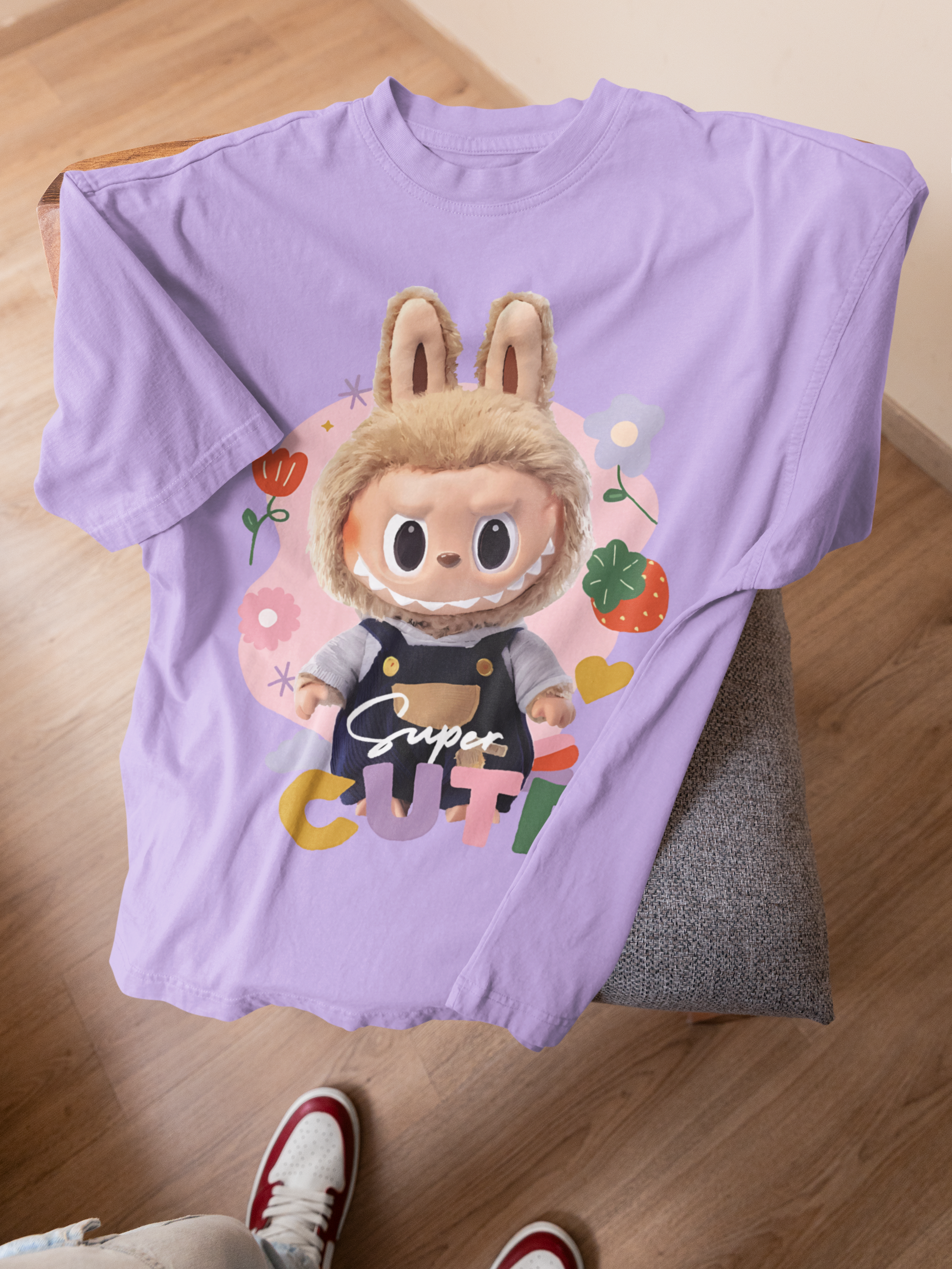 Labubu 'Super Cute' Oversized T-Shirt | Unisex Lavender Graphic Tee