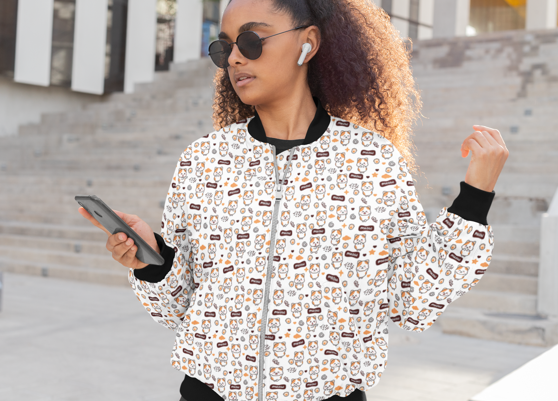 Get your paws on this Meow Mania bomber jacket! With its retro cat pattern, you'll be the coolest cat on the block. This jacket will have you feline fine and looking fly. Don't wait, claw your way to fashion perfection now!