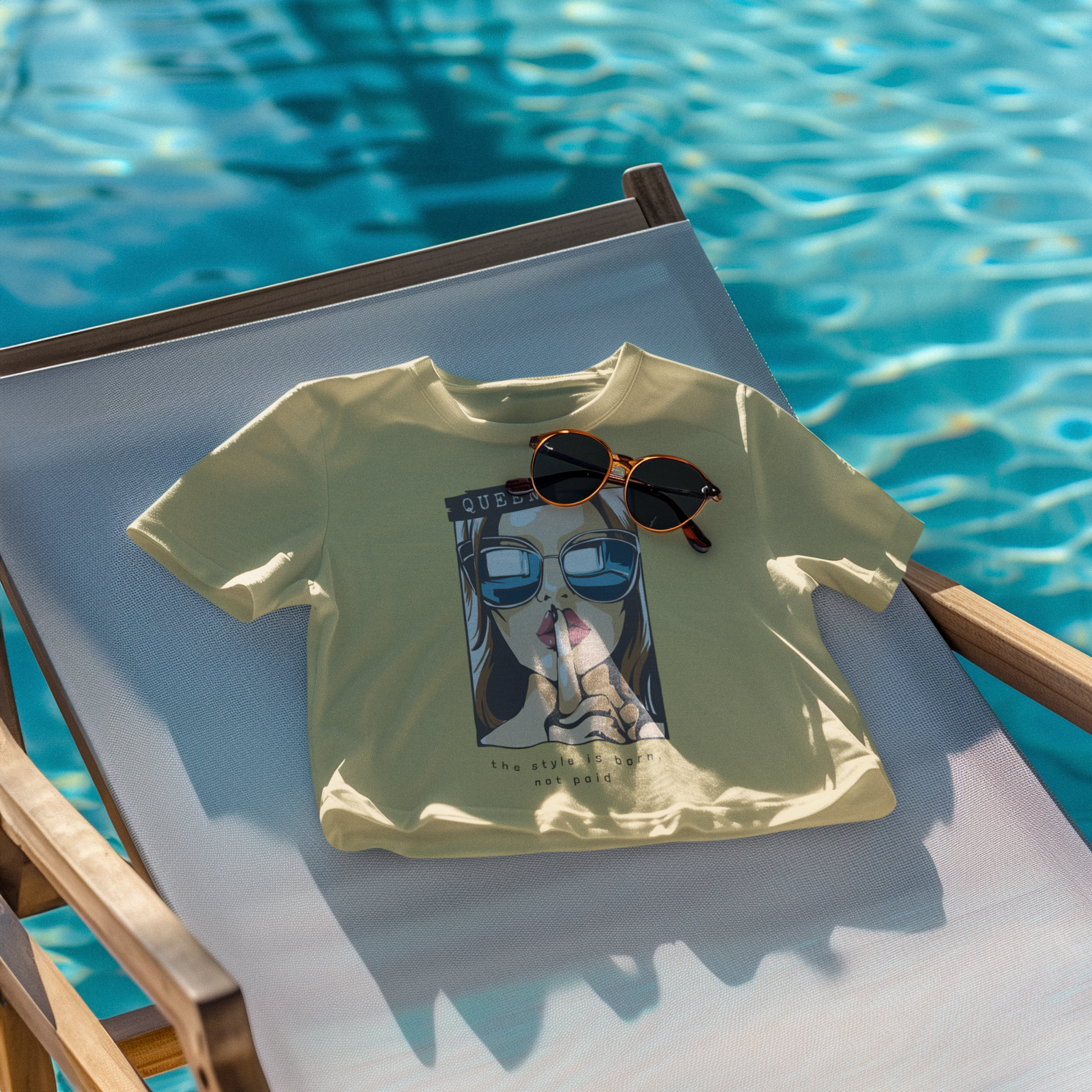Unleash your inner royalty with the "Queen" Printed Beige Crop Top. This stylish top features a playful slogan - "The Style is born not paid" - making a statement about your confidence and unique fashion sense. Rule over the fashion world with this quirky and fun crop top.