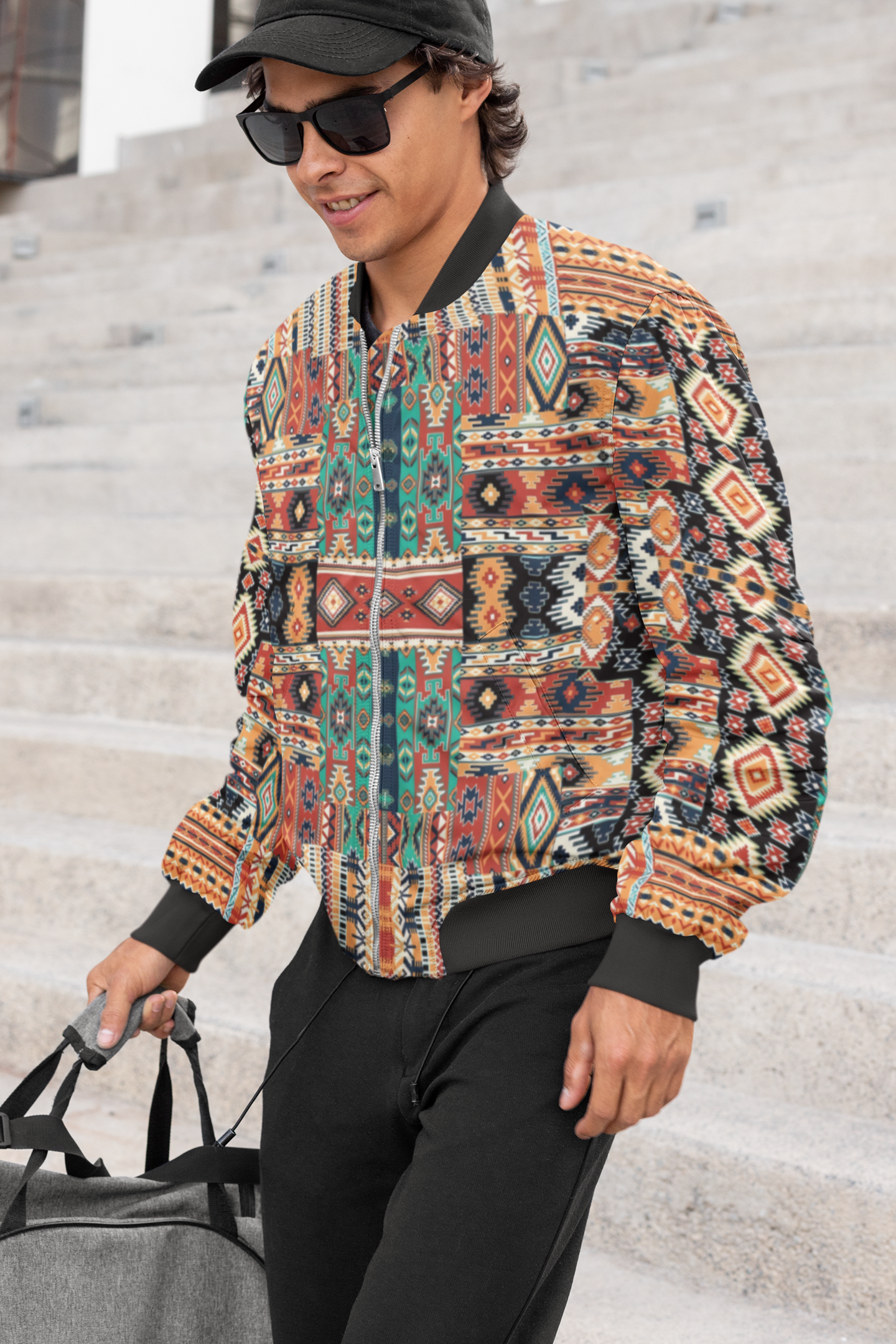 Sambalpuri Multicolor Bomber Jacket - Men's All-Over Ethnic Prints