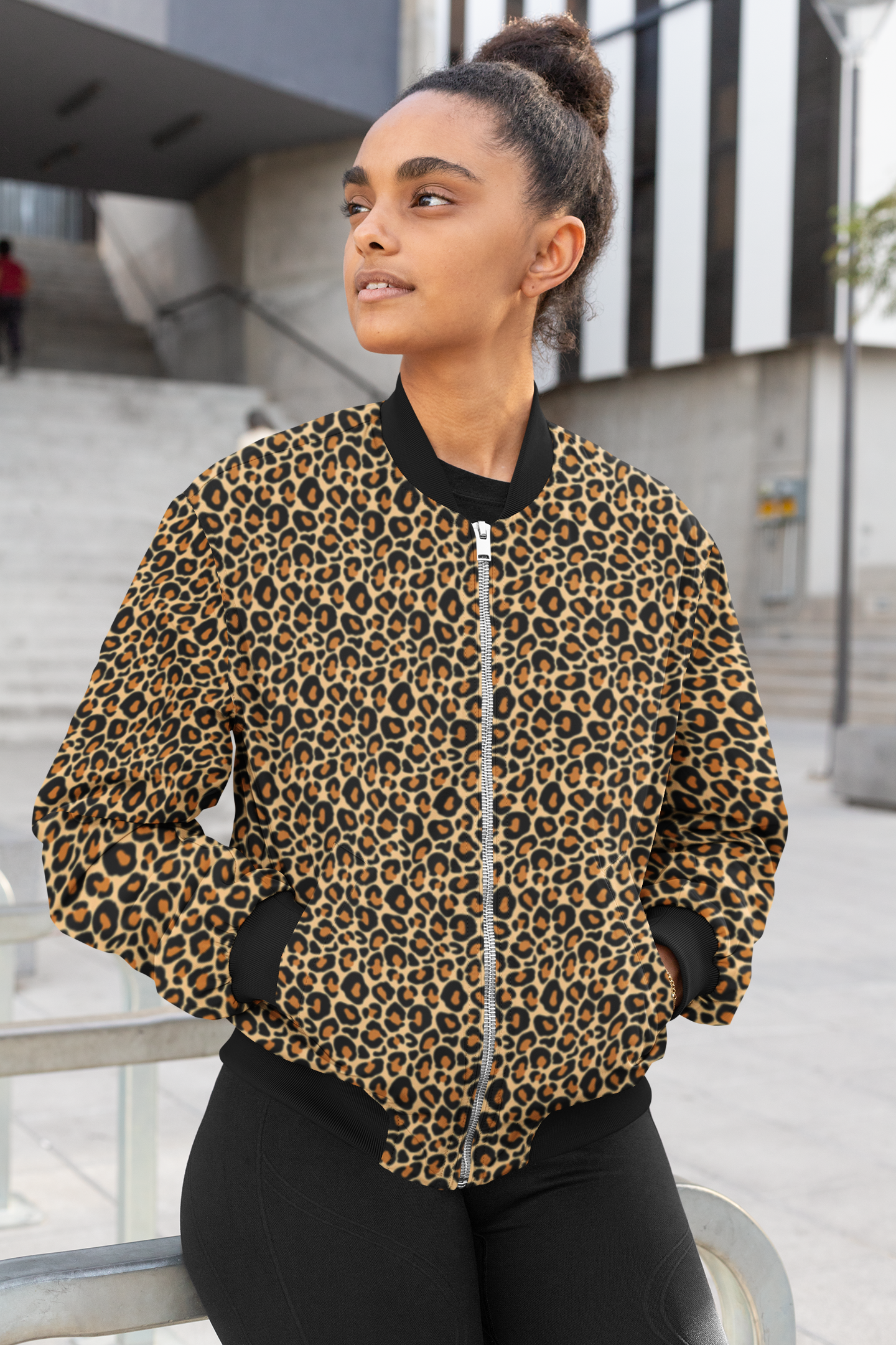 Savanna Chic: Leopard Print Women's Bomber Jacket