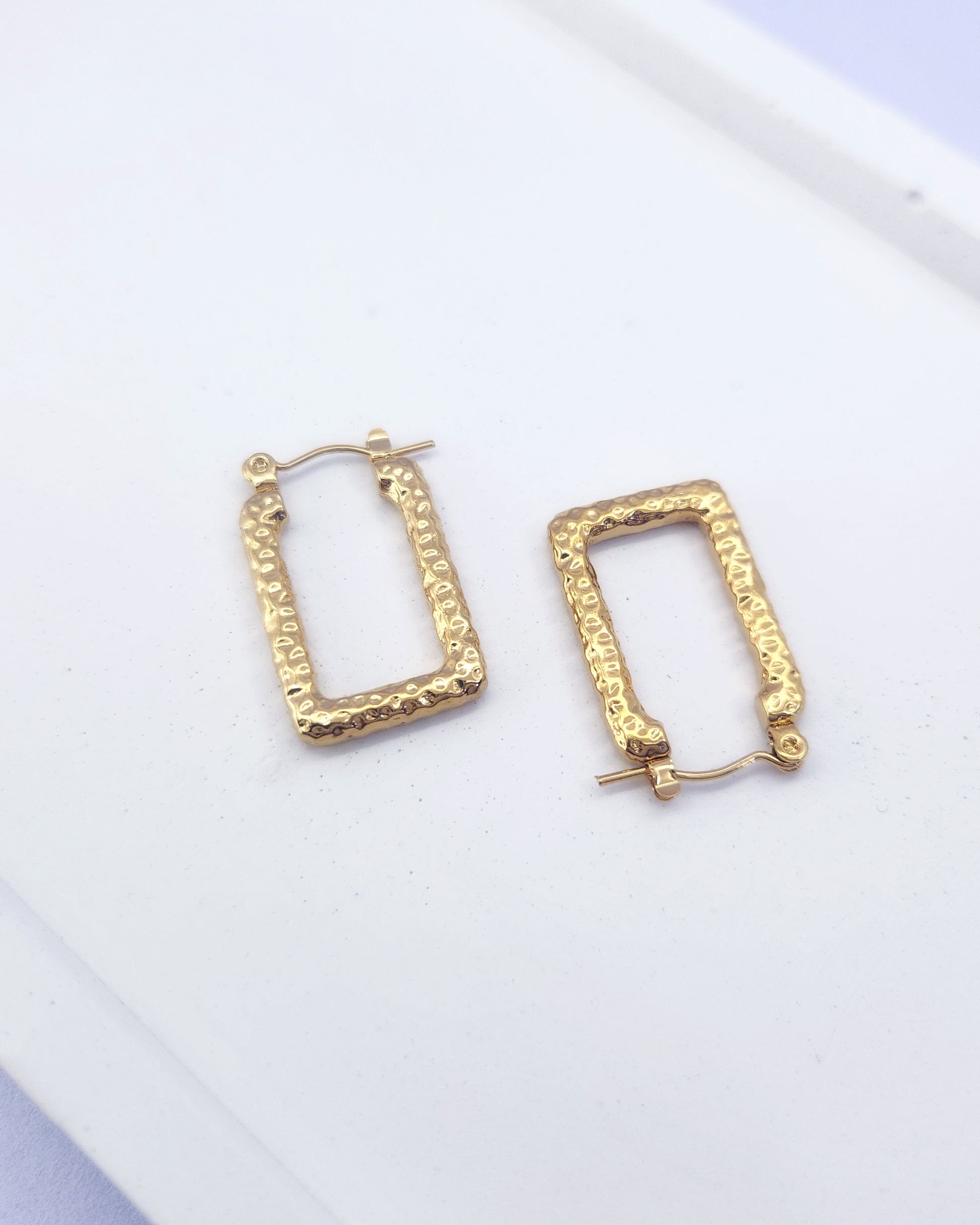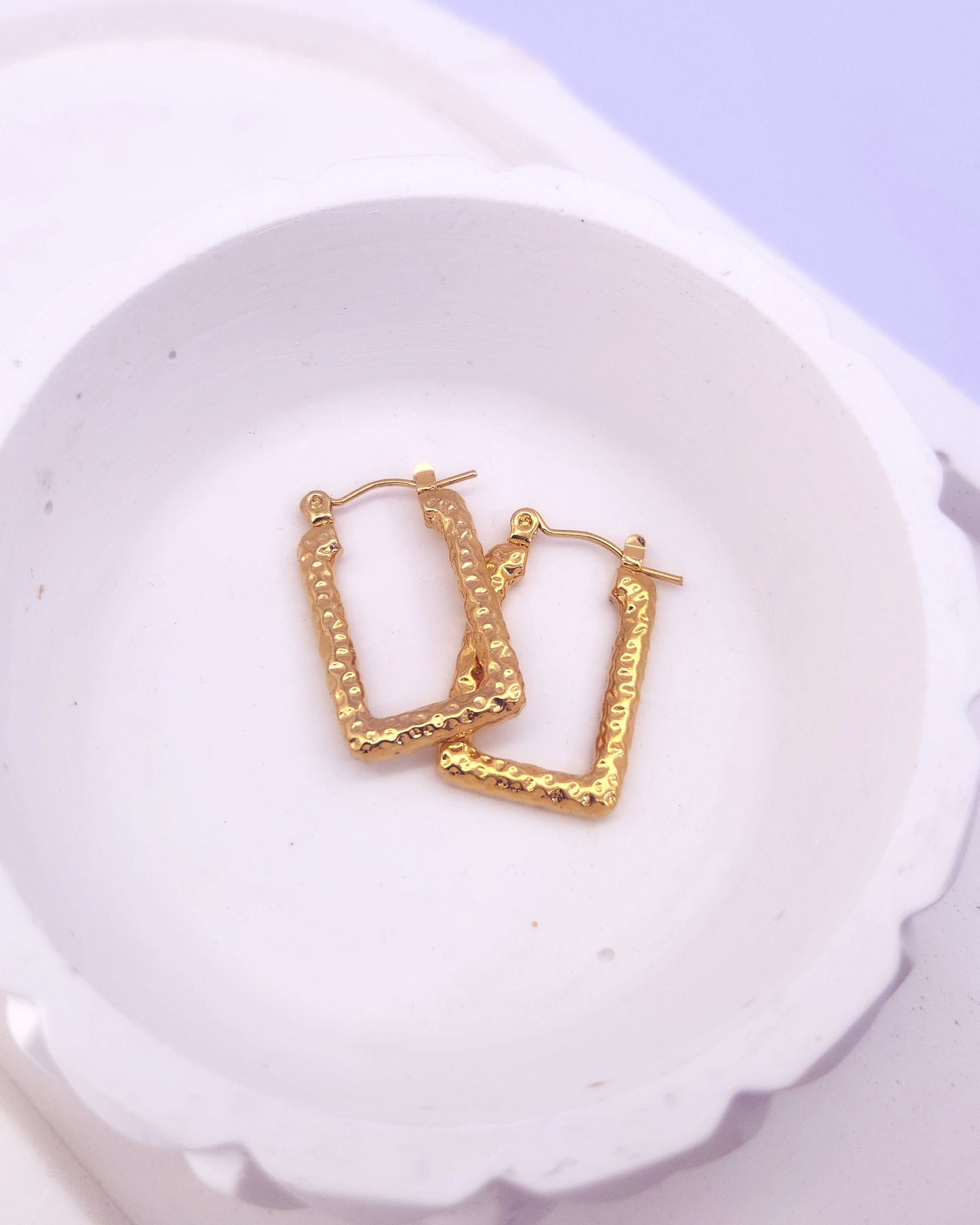 Frame your face with wearable art. These aren't just hoops; they're a statement. The sharp, rectangular form provides an edgy, architectural look, while the hand-hammered texture gives them a raw, authentic feel that feels both luxurious and down-to-earth. They are a tribute to modern design and confident style.