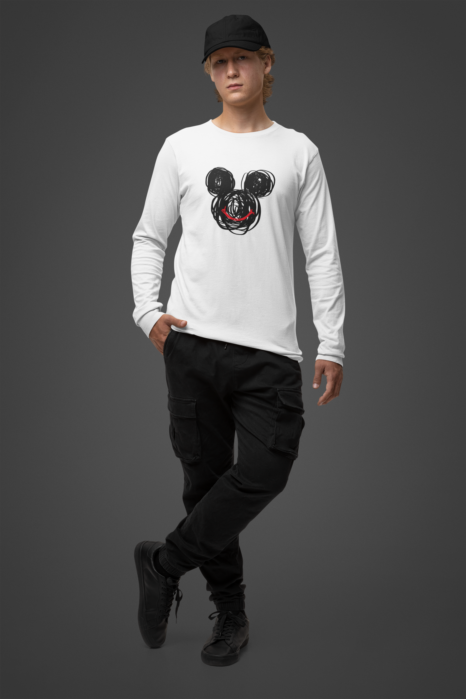 This isn't just a t-shirt; it's a canvas. Crafted from premium, soft-touch white cotton, this long-sleeve tee serves as the backdrop for a powerful piece of modern art. The back features a chaotic yet captivating scribble-style graphic that reimagines a timeless character with the raw energy of street art. A jagged, graffiti-style crown in bold red sits atop the icon, while the word "SMILE" is artfully obscured, suggesting a deeper meaning. Finished with the #ASQR tag, this piece is a statement of individuality and a tribute to the iconoclasts. Wear your art.