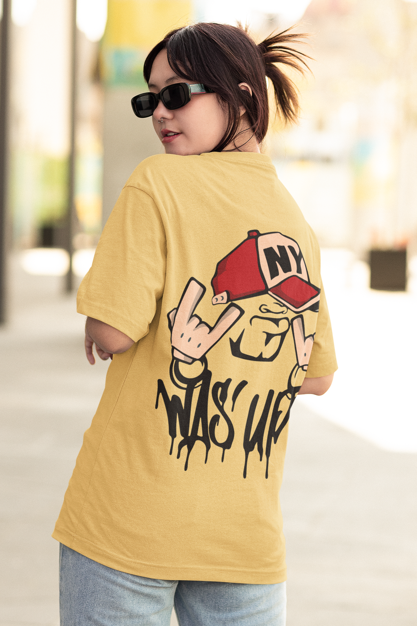 Streetwear Mustard Yellow T-Shirt – Oversized Fit with "Wasup" Print