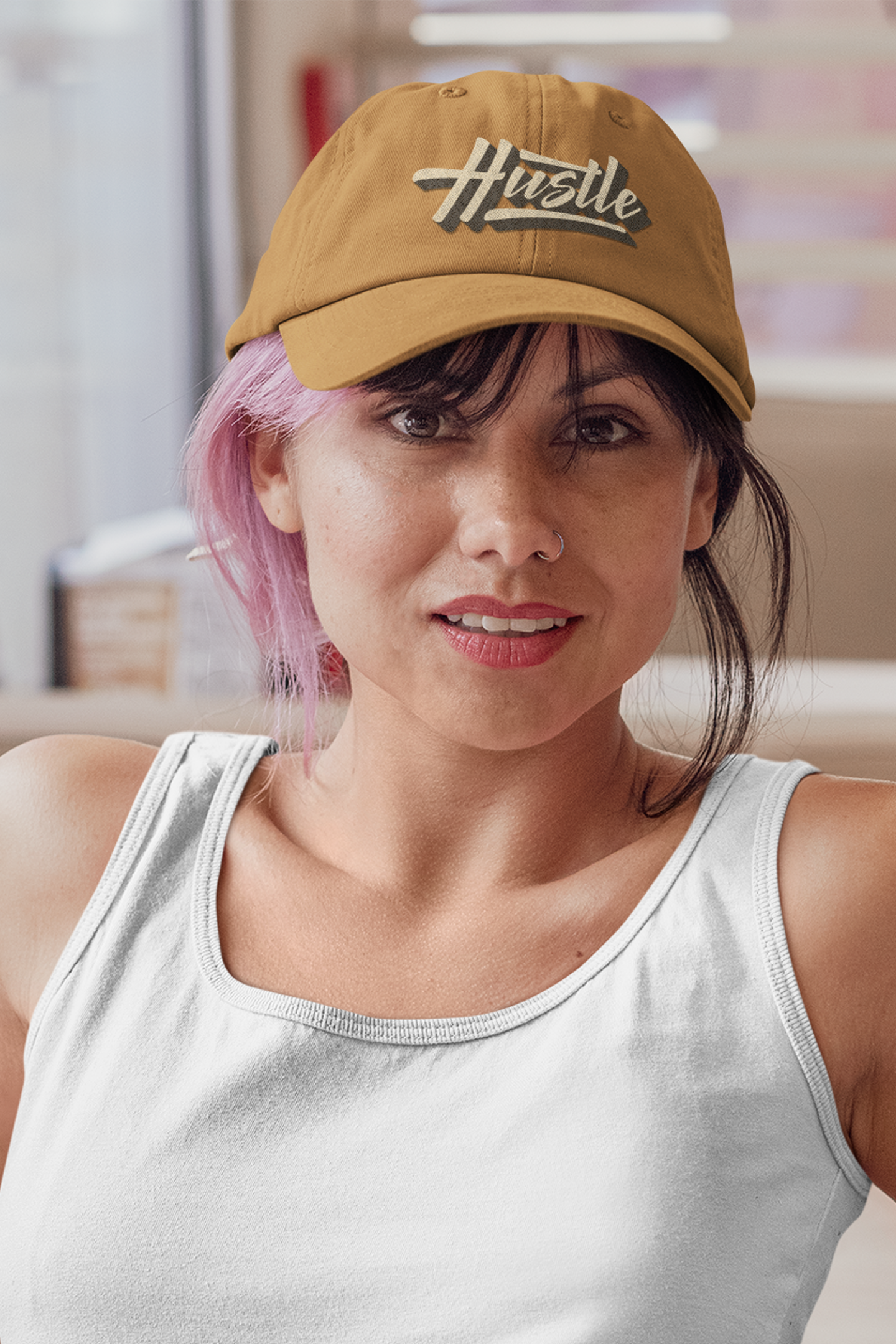Show the world your drive and determination with our khaki "Hustle" baseball cap. This stylish cap features a bold, embroidered "Hustle" design, serving as a daily reminder to pursue your goals with passion and energy. The comfortable khaki fabric and adjustable fit make it perfect for everyday wear, whether you're hitting the gym, working on a project, or simply going about your day.