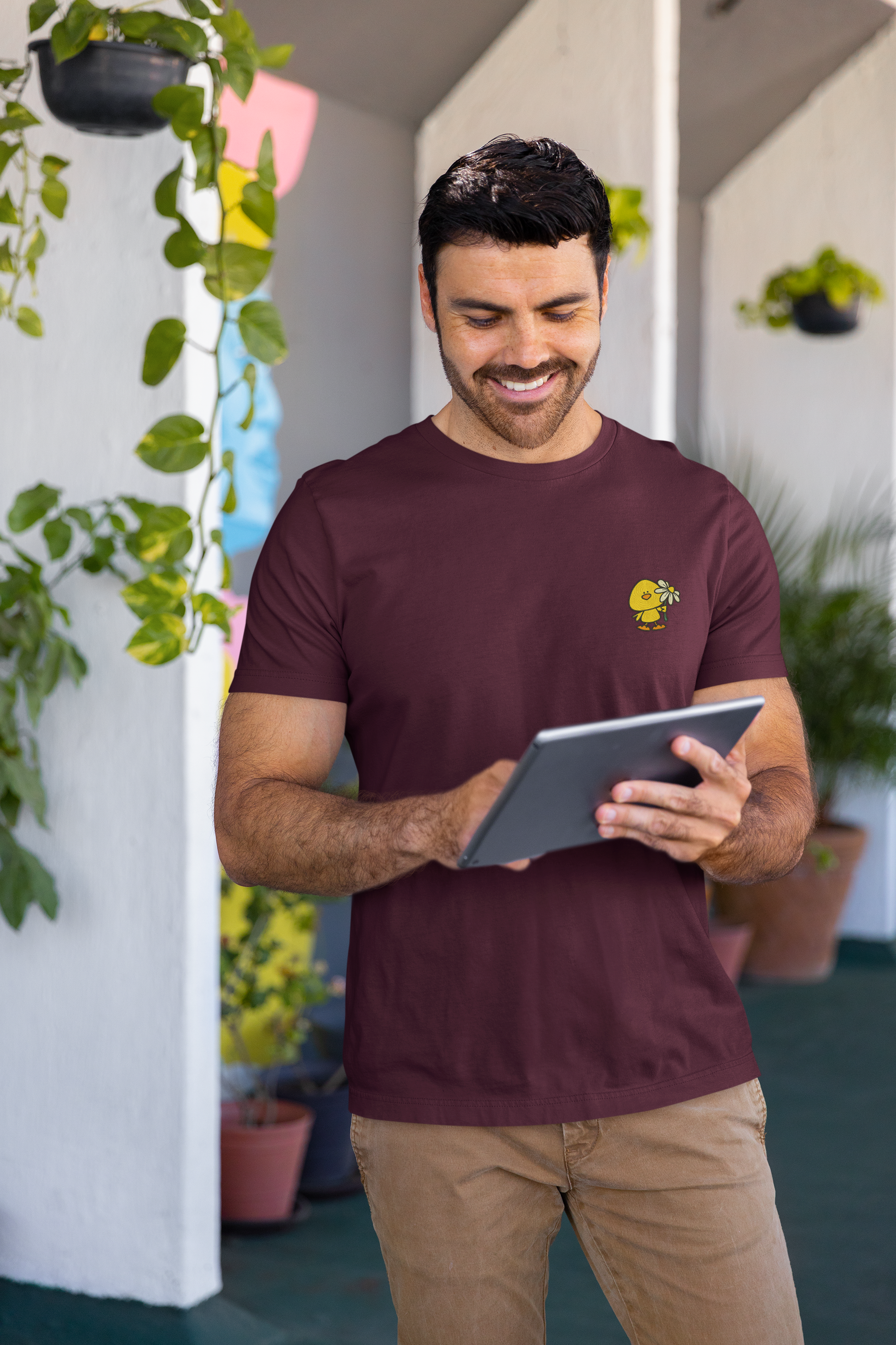 Some days just call for a touch of sweetness. We've taken the timeless, ultra-comfortable crew neck tee and added a delightful surprise: a tiny, charming chick holding a daisy, meticulously embroidered on the chest.