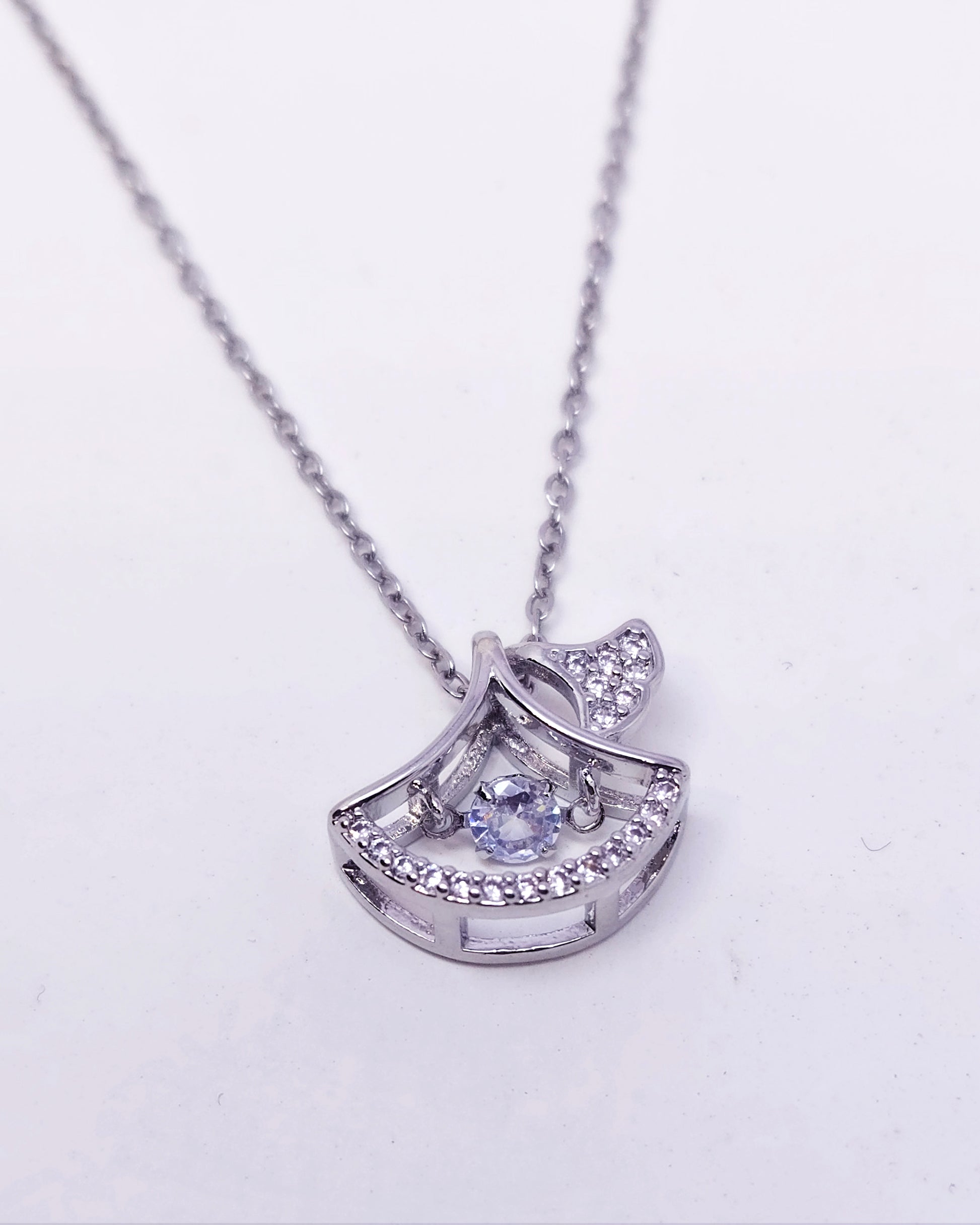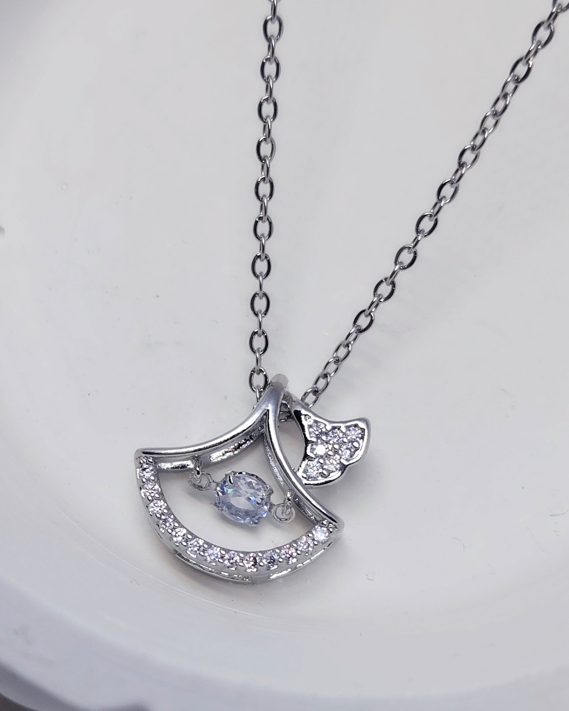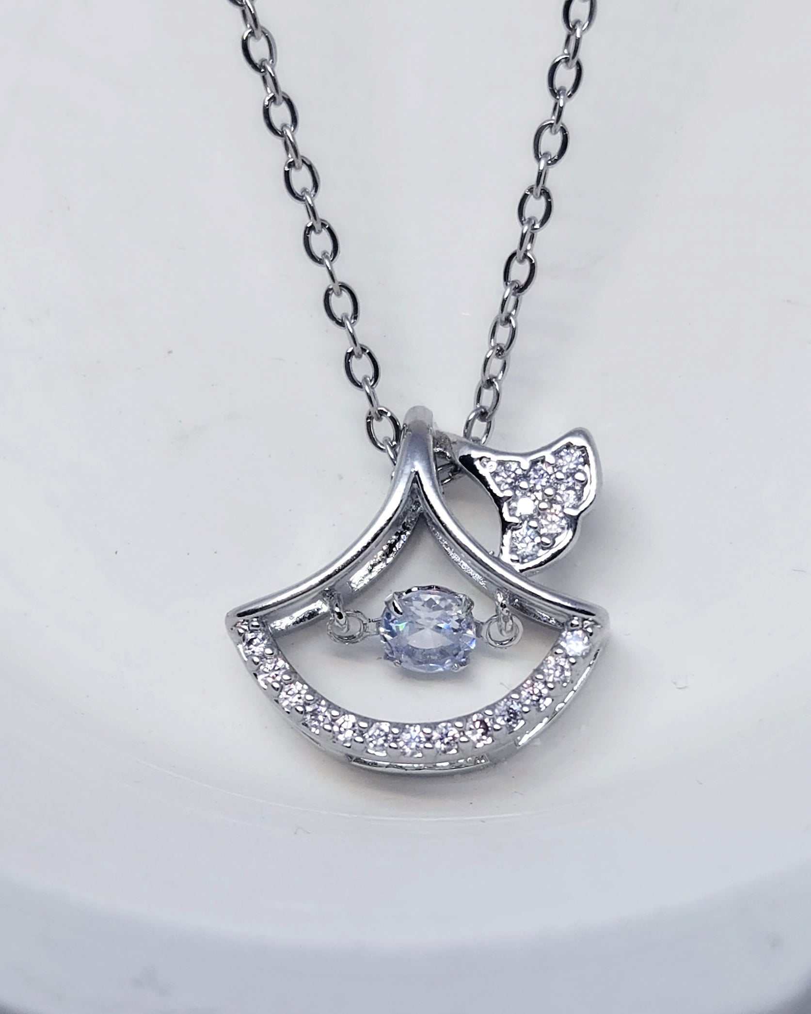 Inspired by the graceful Ginkgo leaf—a timeless symbol of hope and endurance. This elegant silver-toned pendant shimmers with pavé crystals along its delicate, fan-like edge.