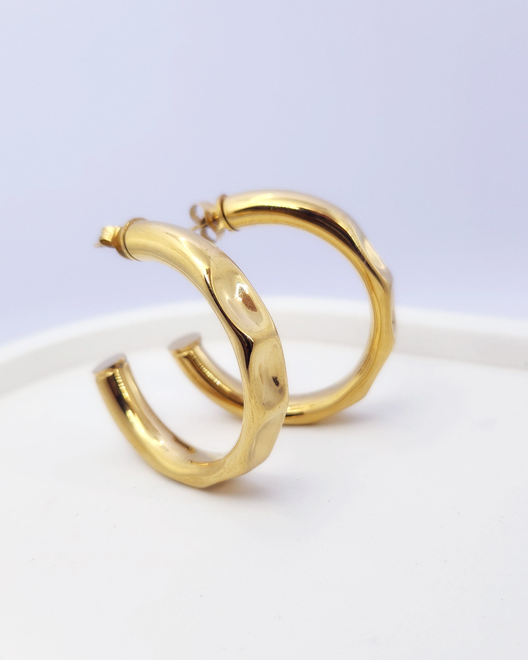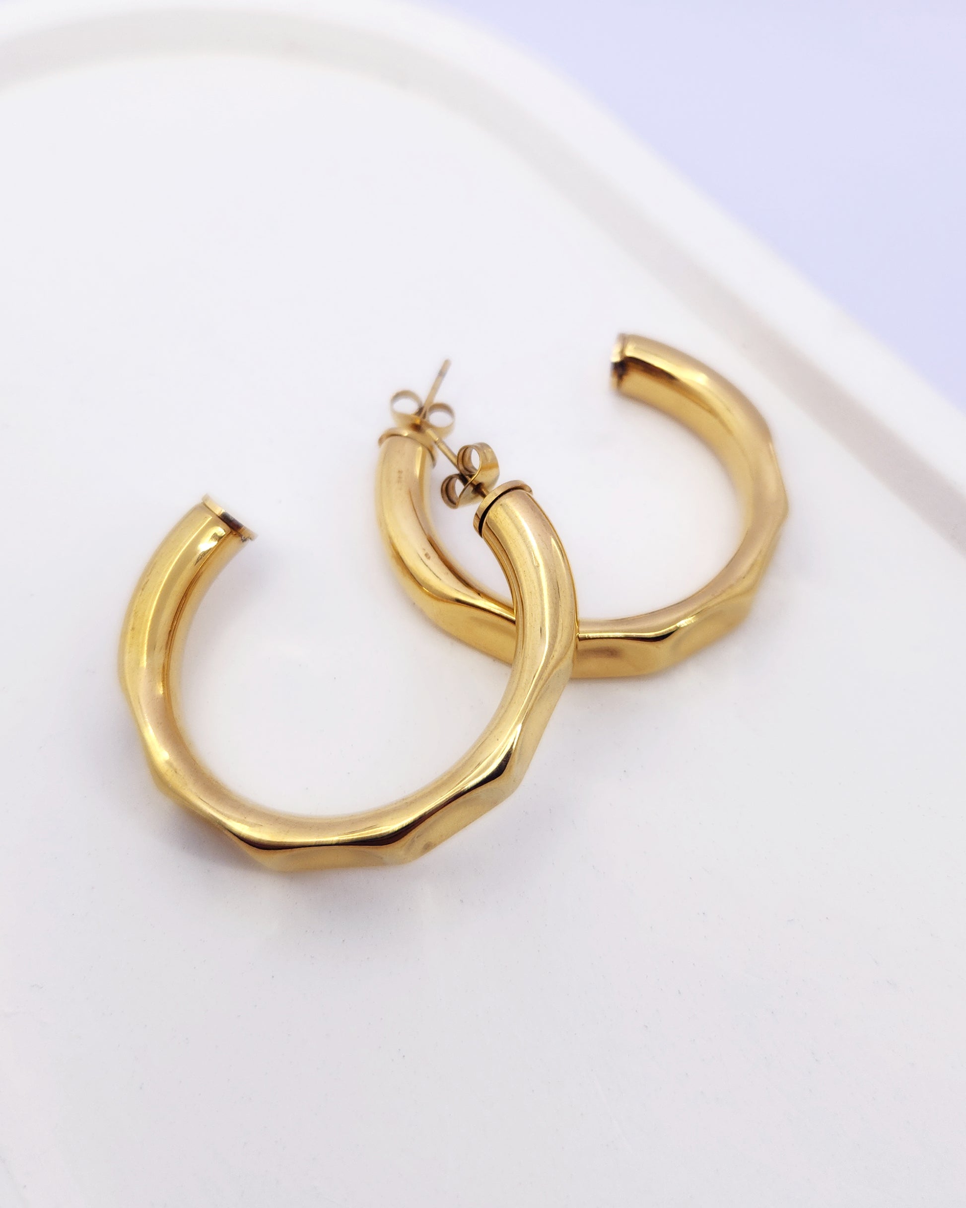 Enjoy the rich look of 18k gold on a worry-free, hypoallergenic stainless steel base. The premium materials ensure your hoops will remain radiant and tarnish-free, while the secure post backing keeps them comfortably in place.