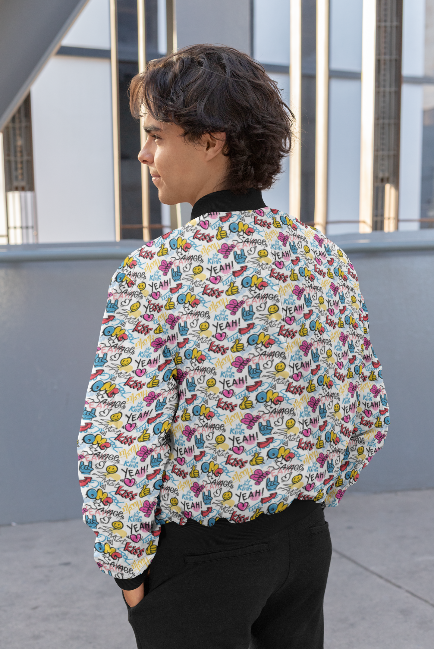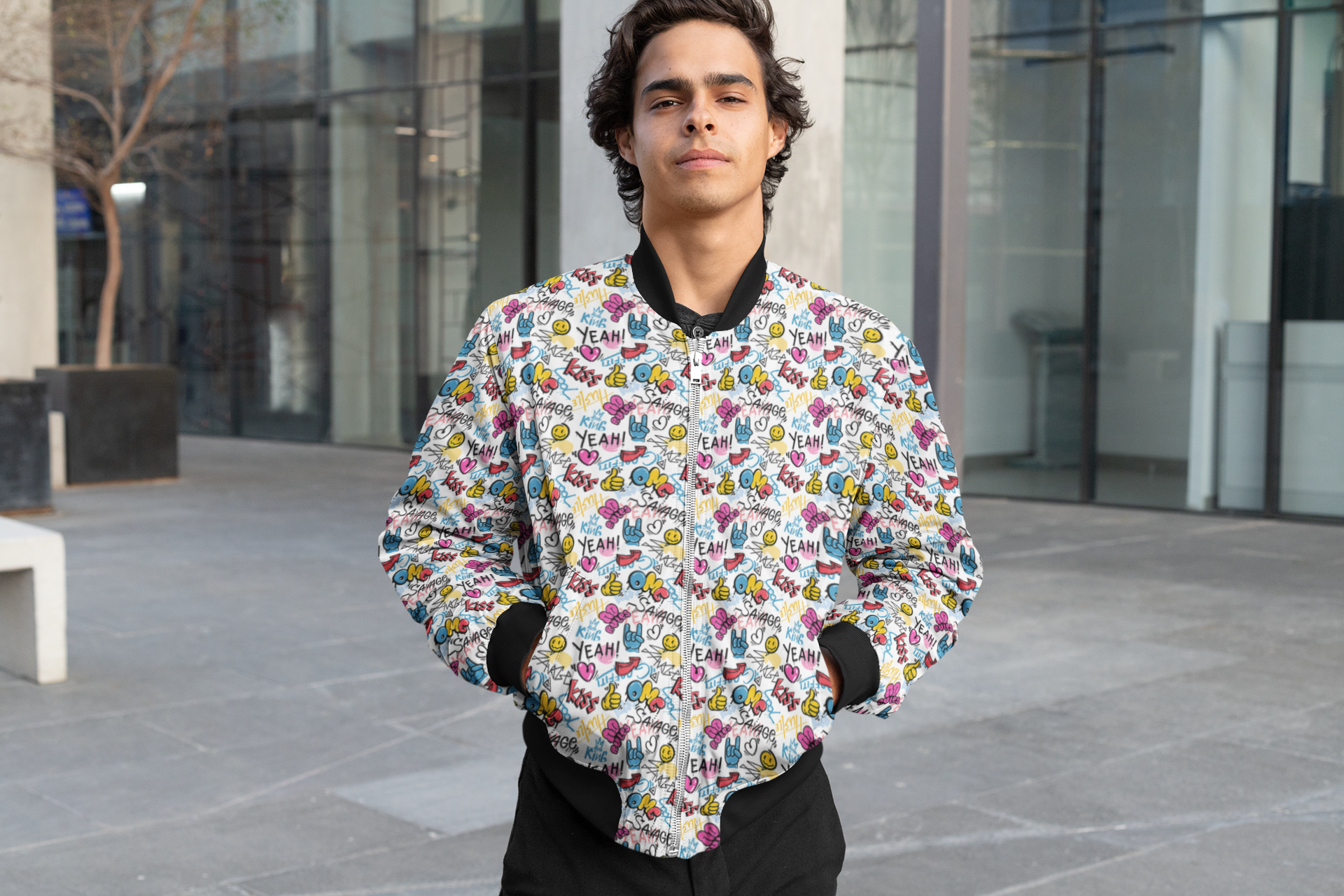 Urban Edge: Men's Graffiti Pattern Bomber Jacket