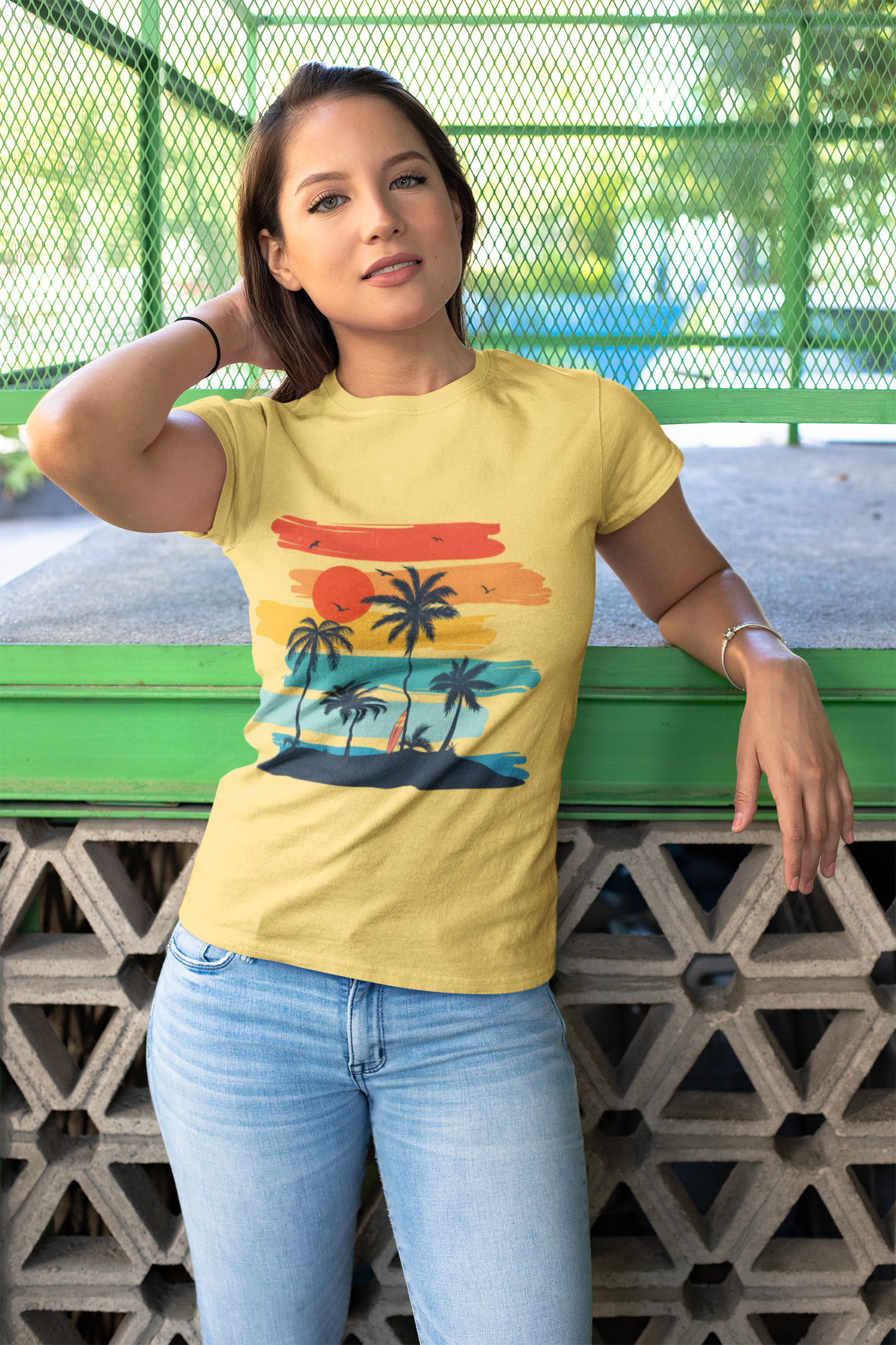 Vintage Vibes Women's T-Shirt – Sunset & Palm Silhouette Retro Style