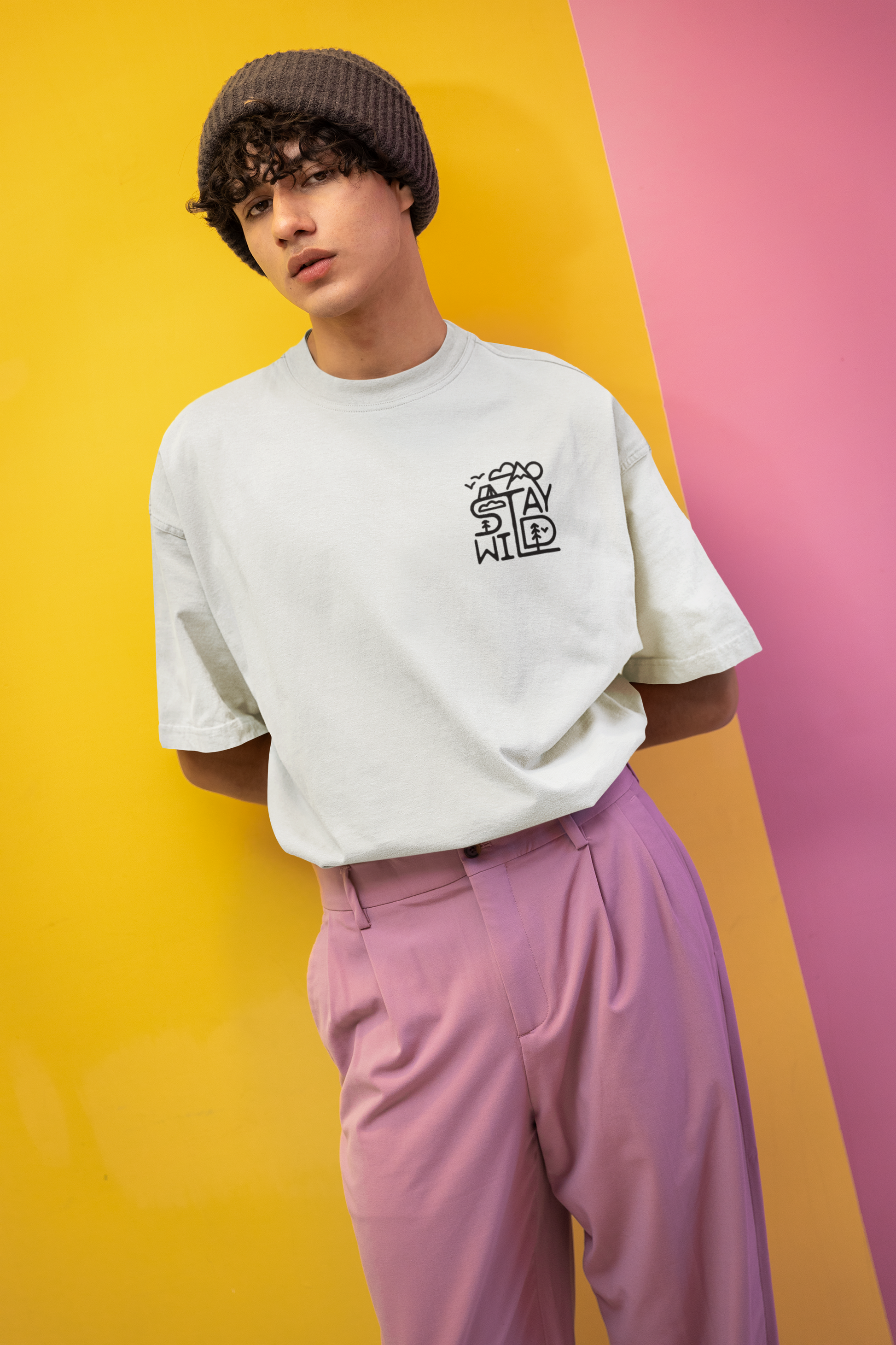 Unleash your wild side with our White Oversized Unisex T-Shirt. Featuring a playful "Stay Wild" print, this shirt is perfect for those who don't take themselves too seriously. Made with comfortable fabric and a loose fit, it's the perfect addition to your quirky wardrobe. So go ahead, stay wild and stand out from the crowd!