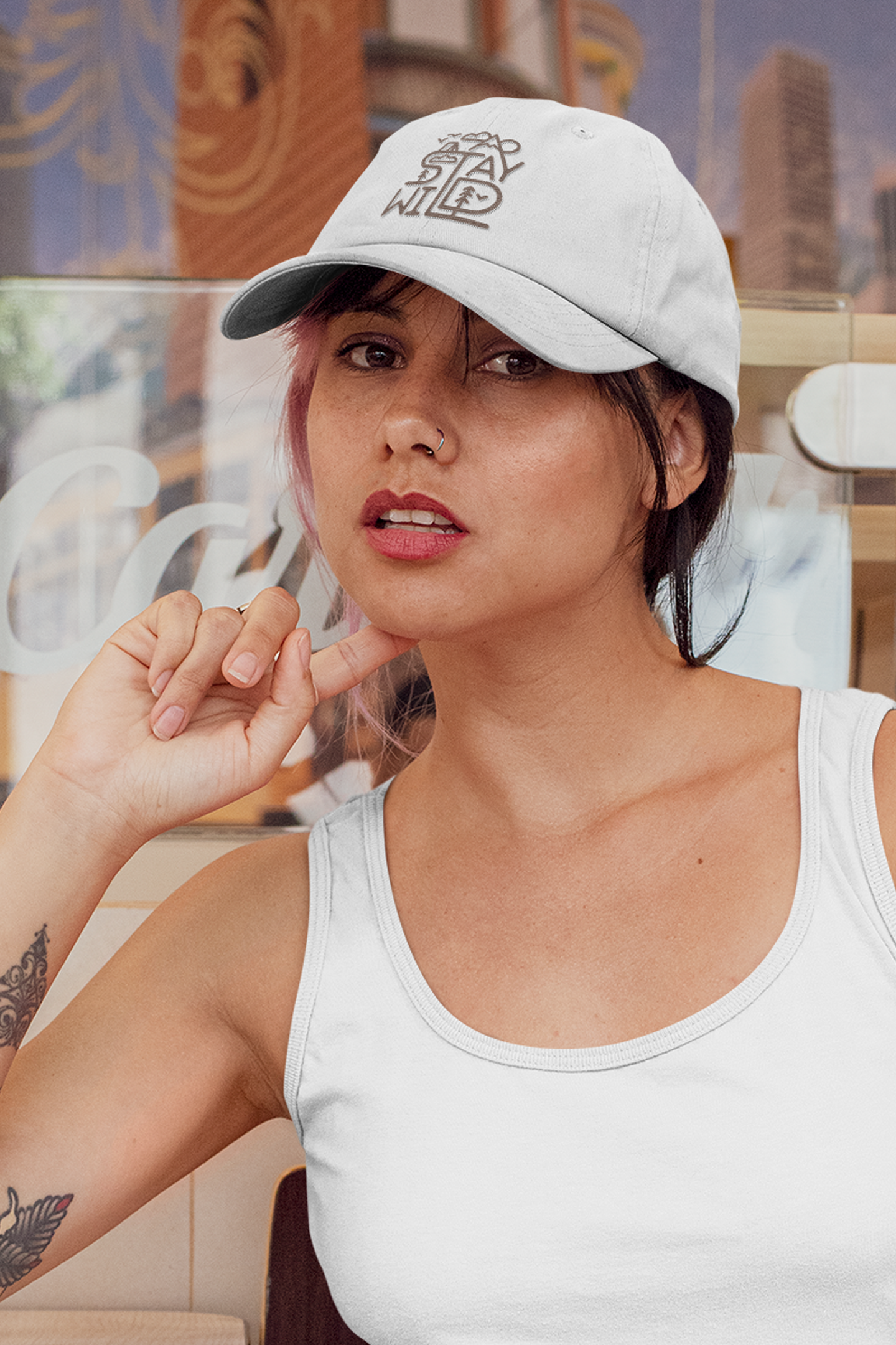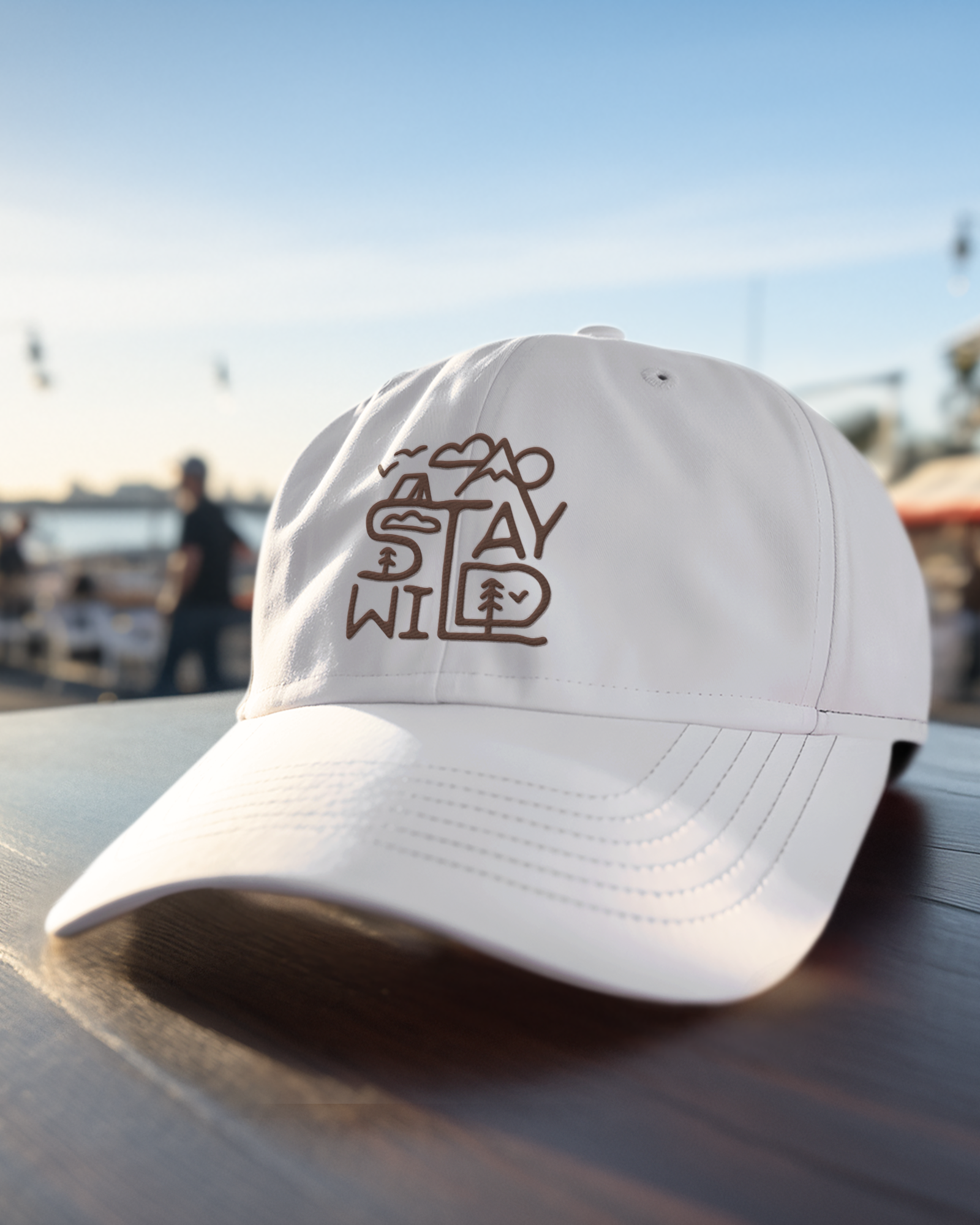 White "Stay Wild" Baseball Cap - Nature-Inspired Design